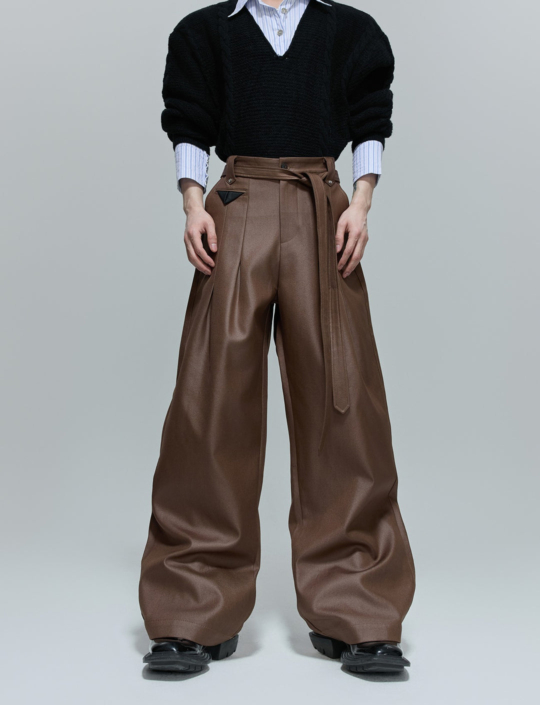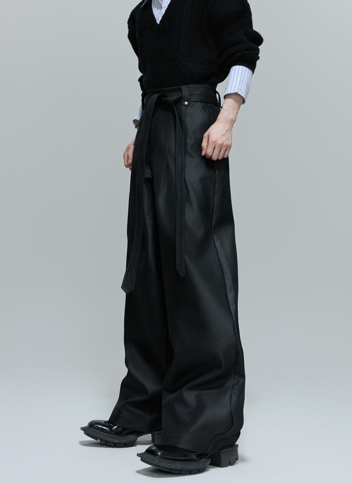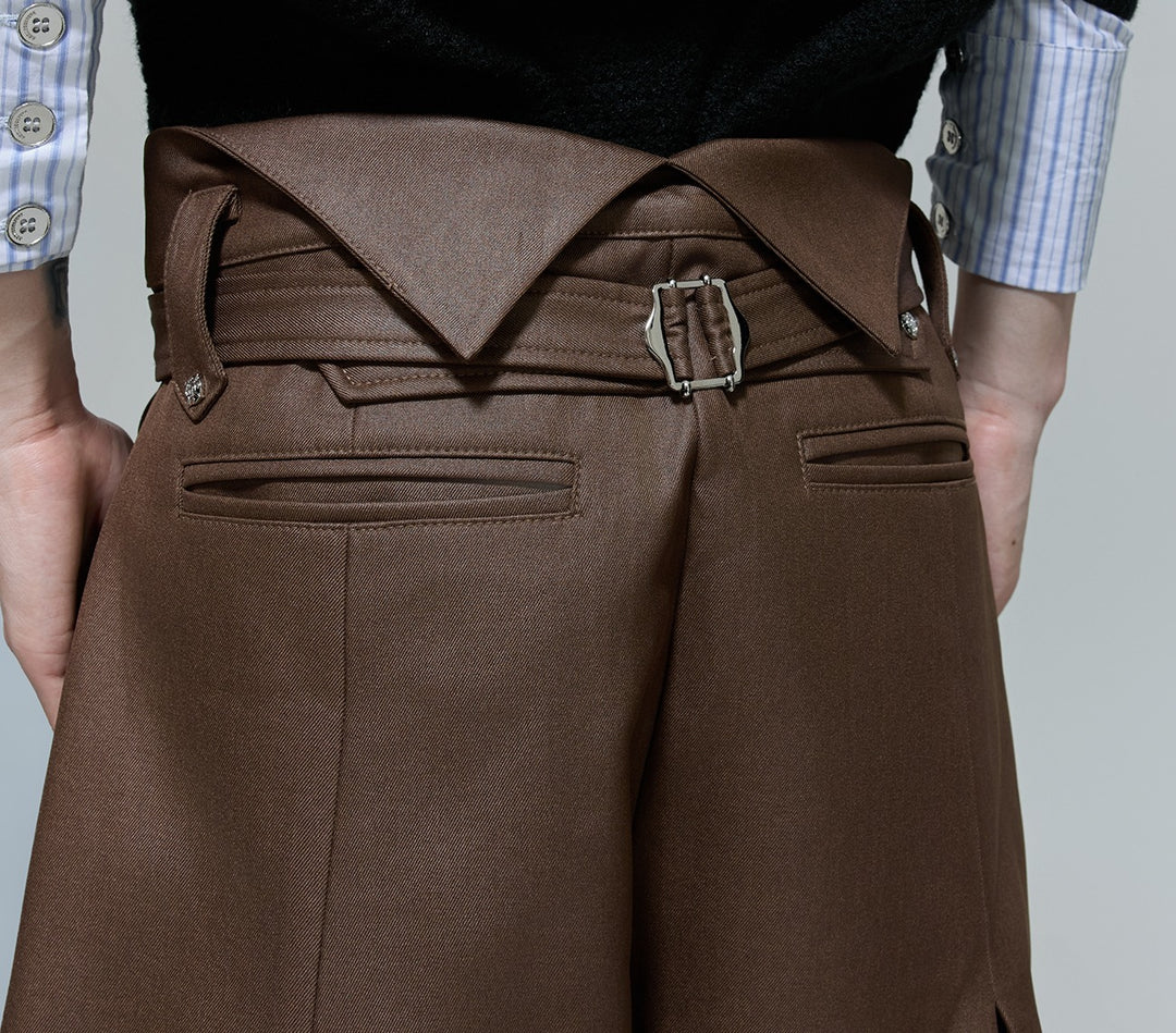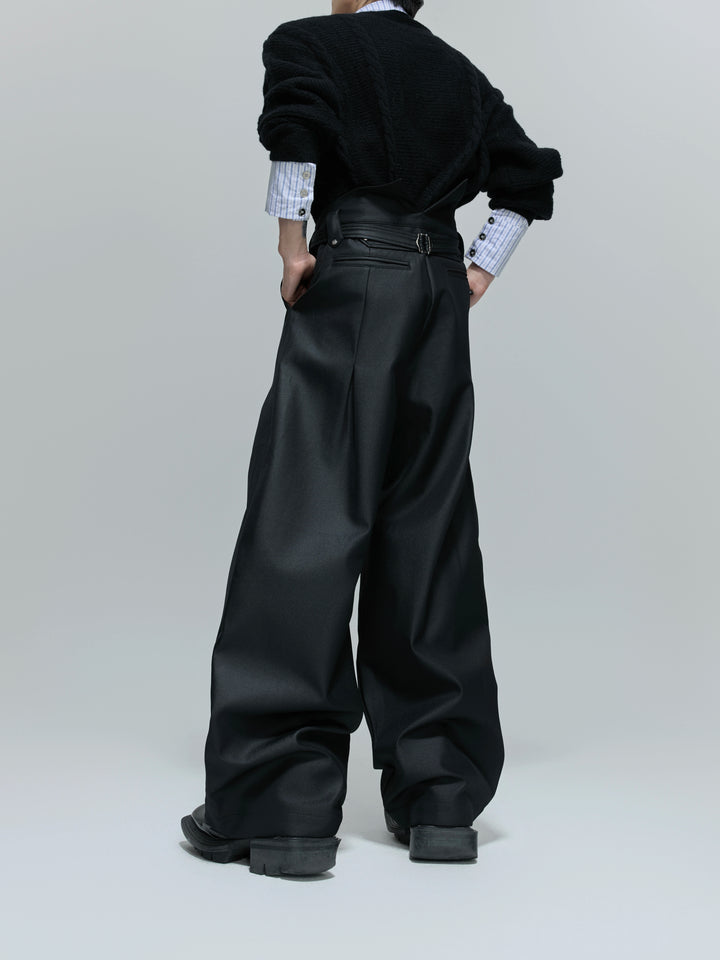 Lesklé plisované široké kalhoty se rovnými nohavicemi