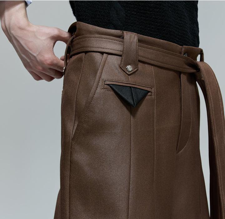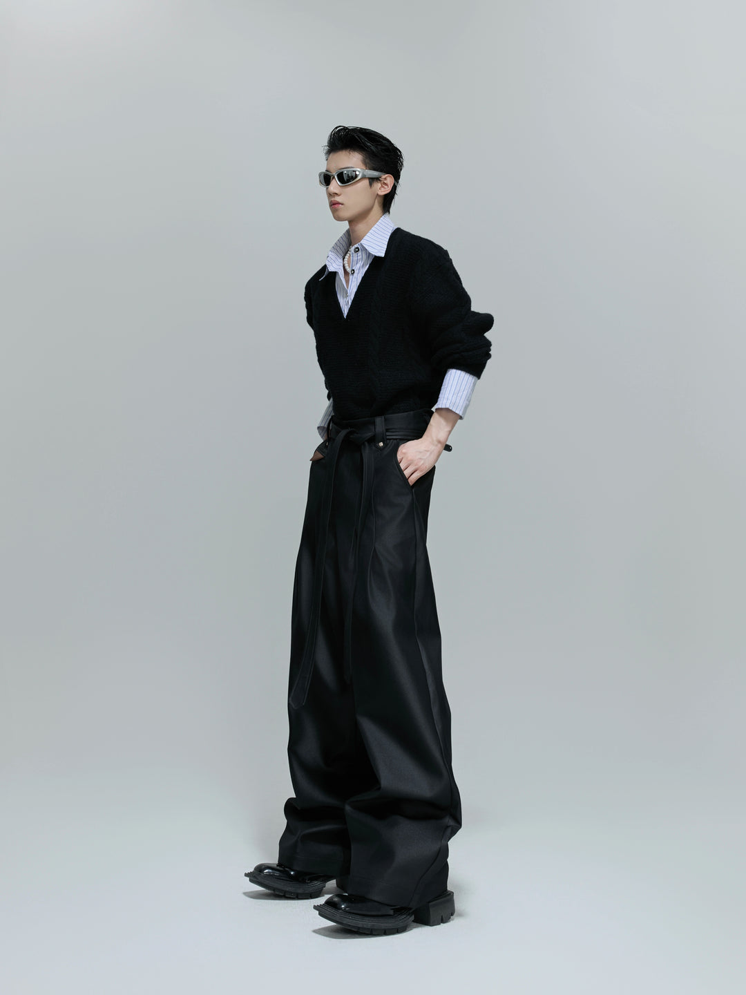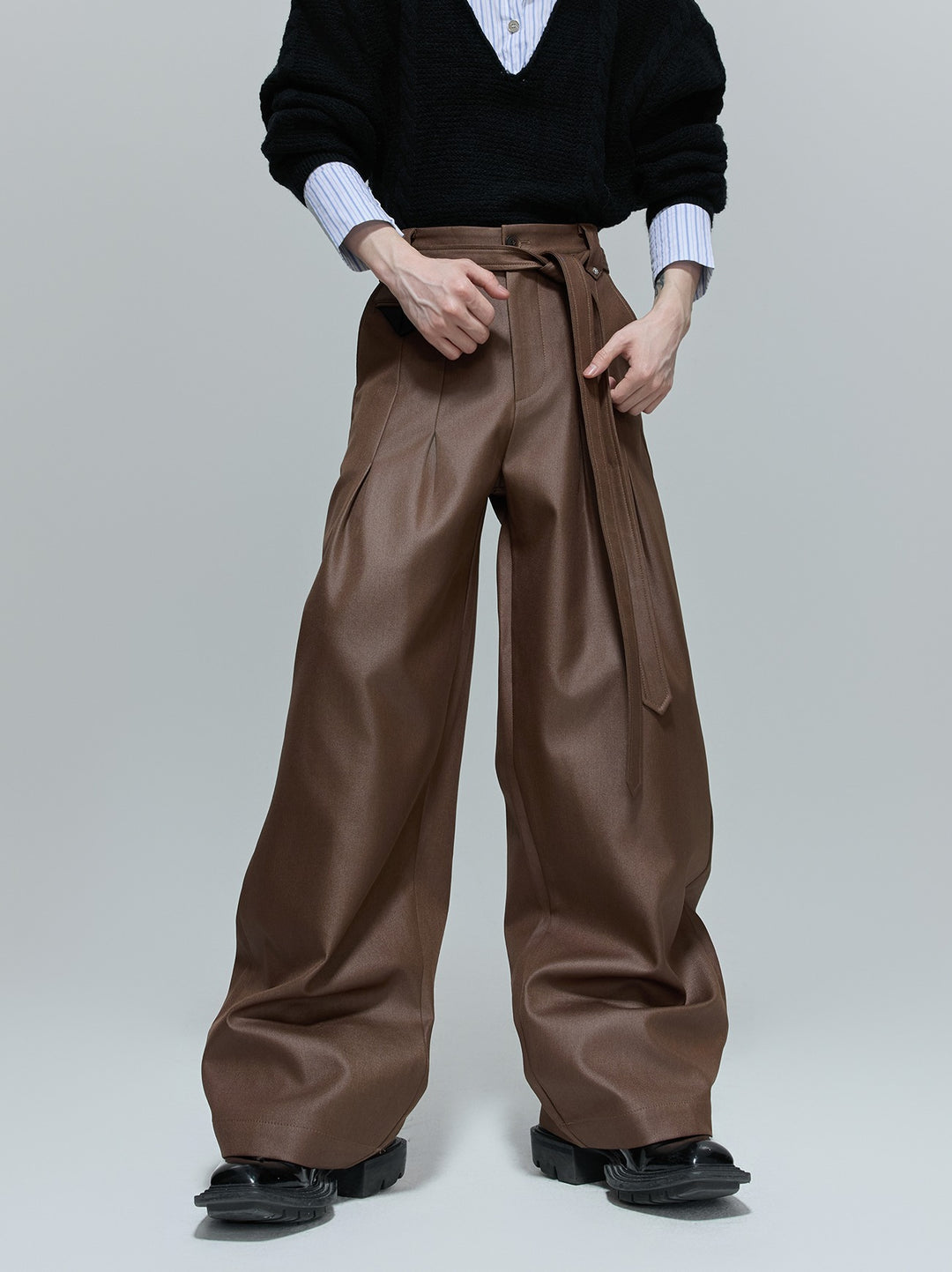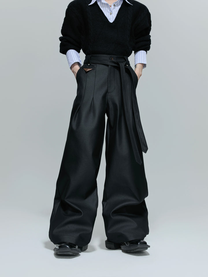 Lesklé plisované široké kalhoty se rovnými nohavicemi
