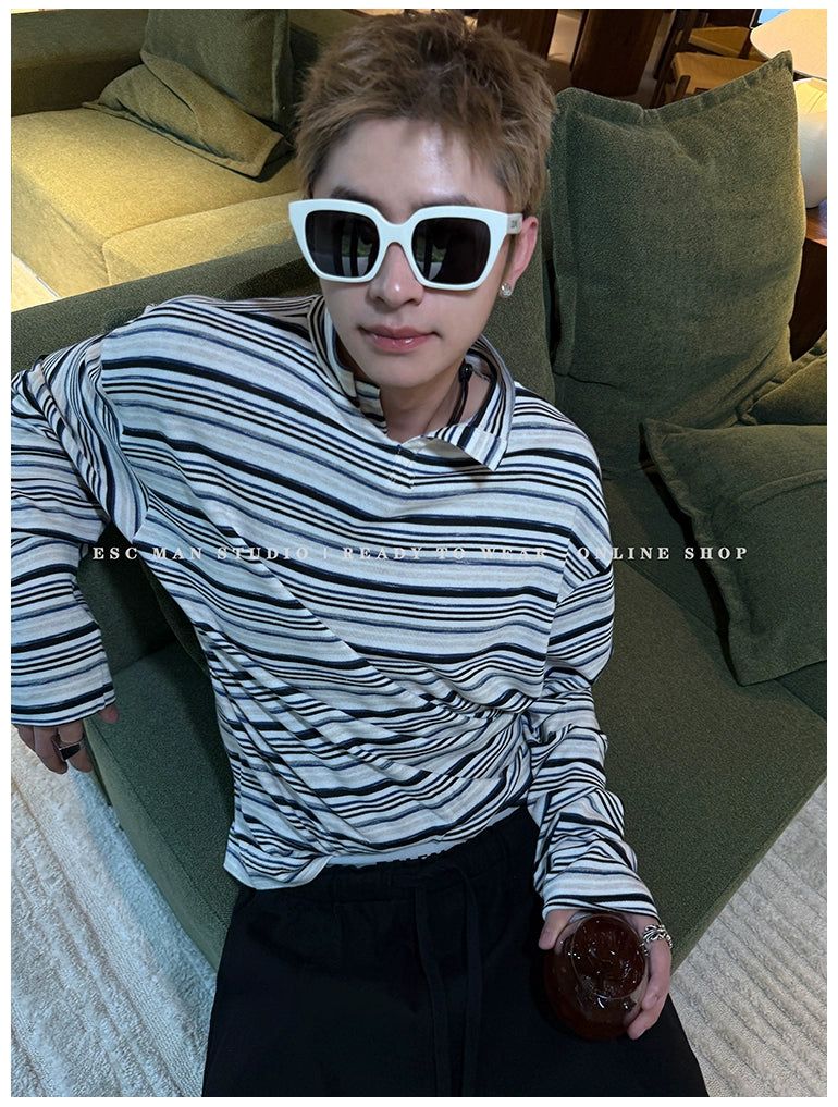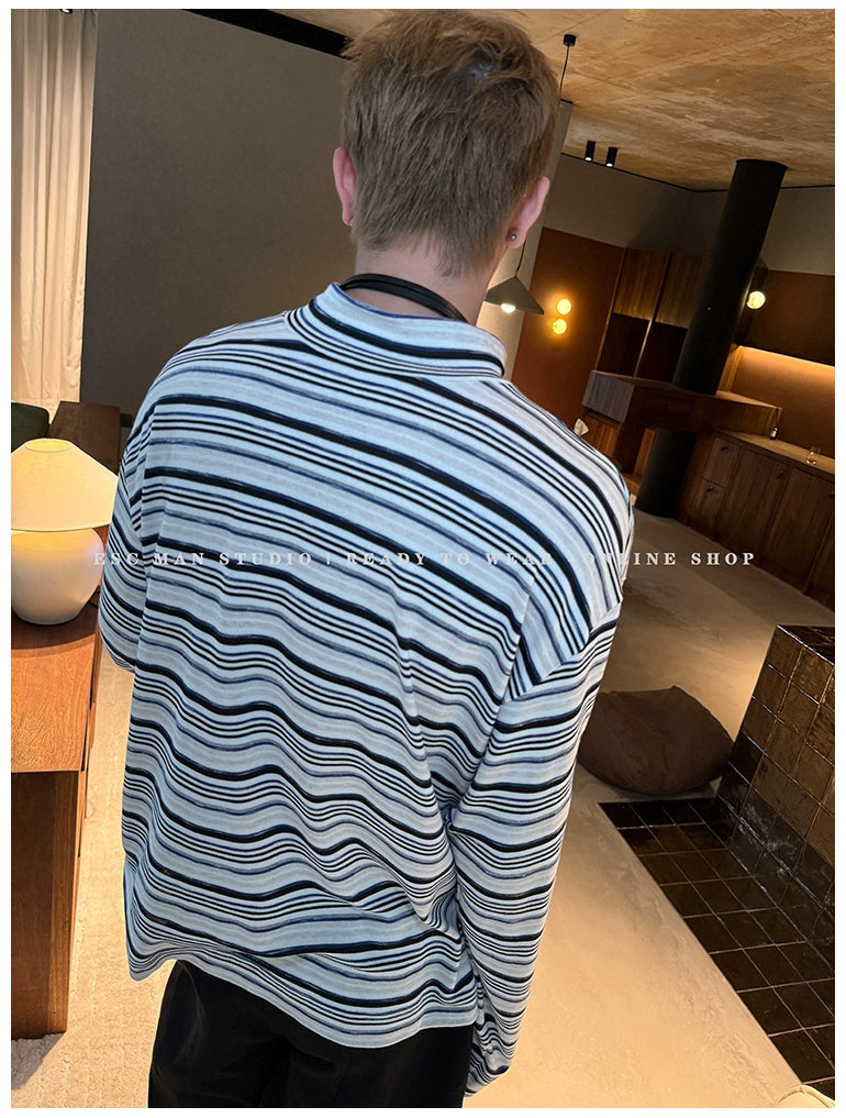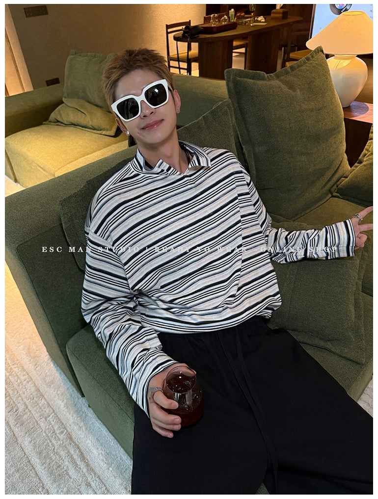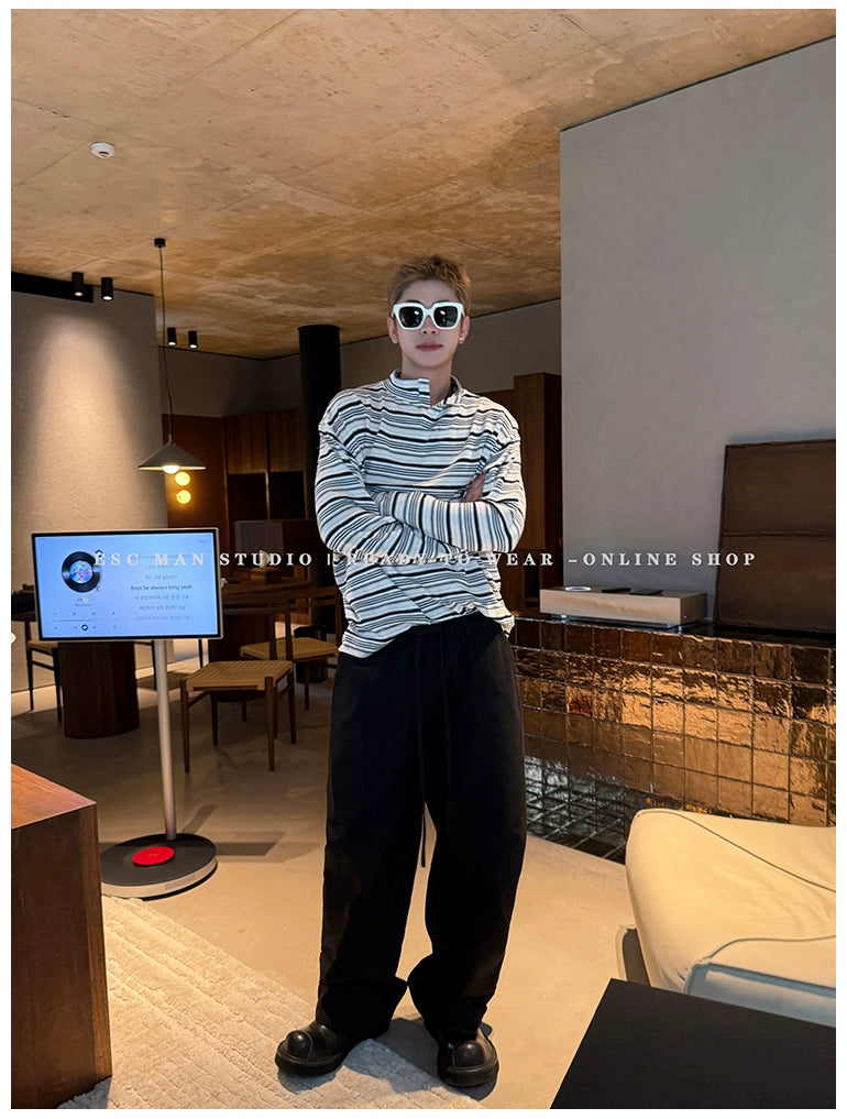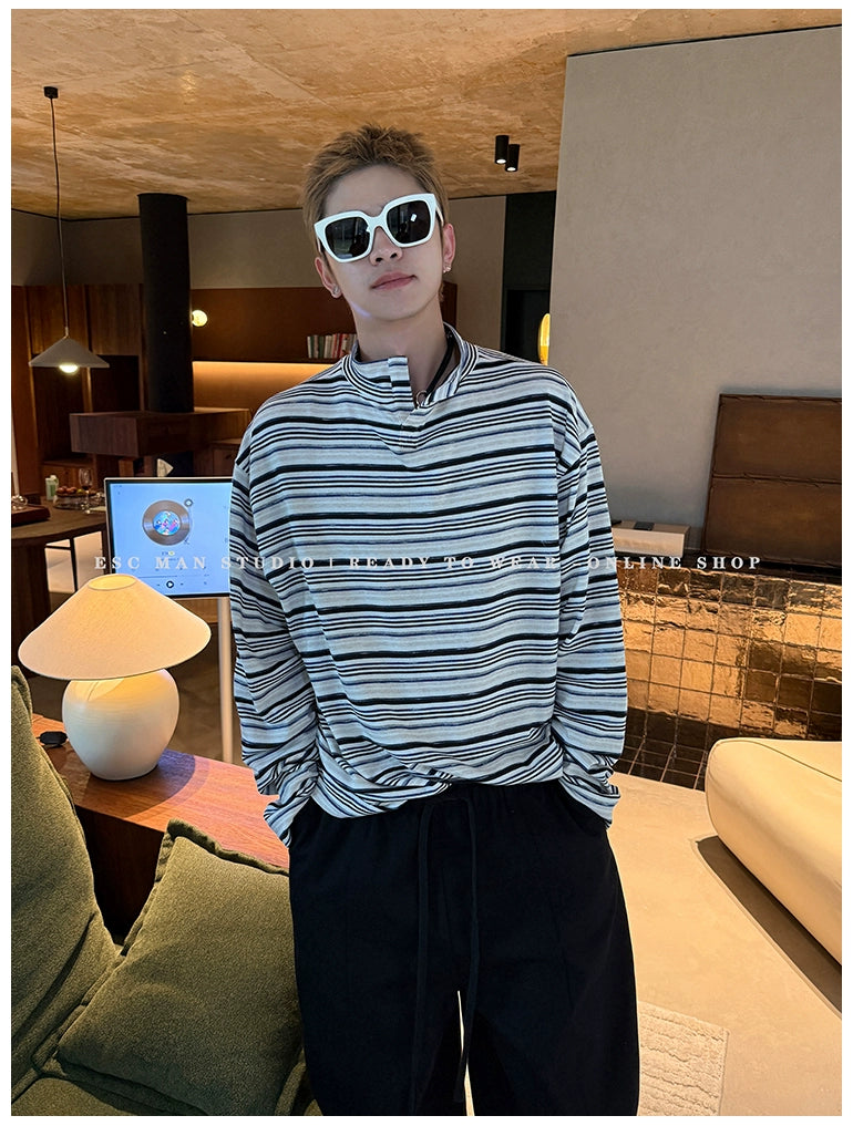 Stojáček límec pruhovaný volný dlouhý rukáv pulovr
