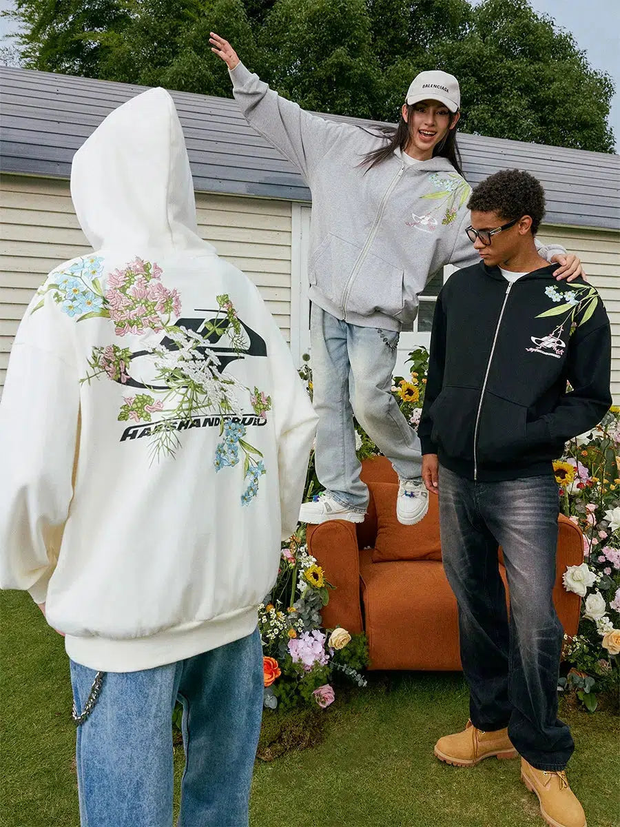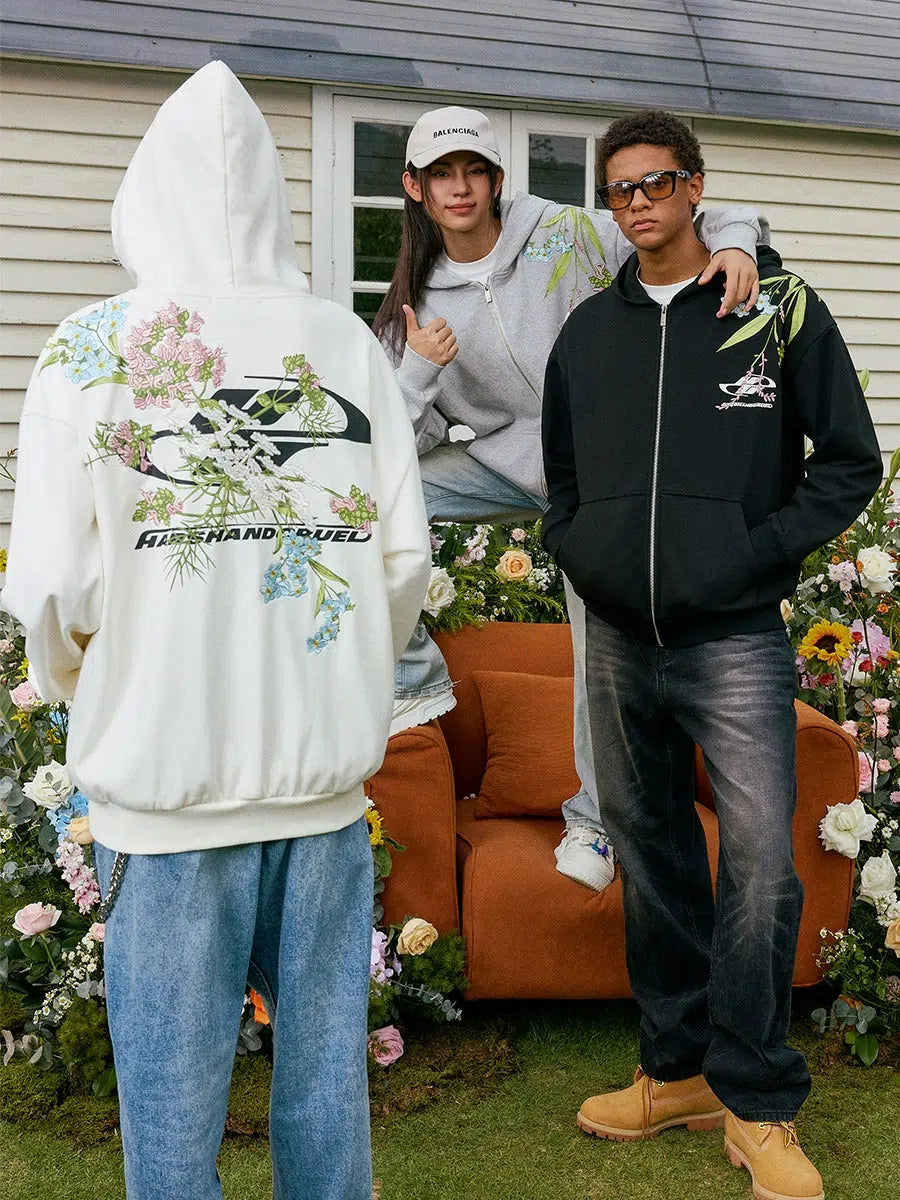 Floral Embroidery Hooded Jacket