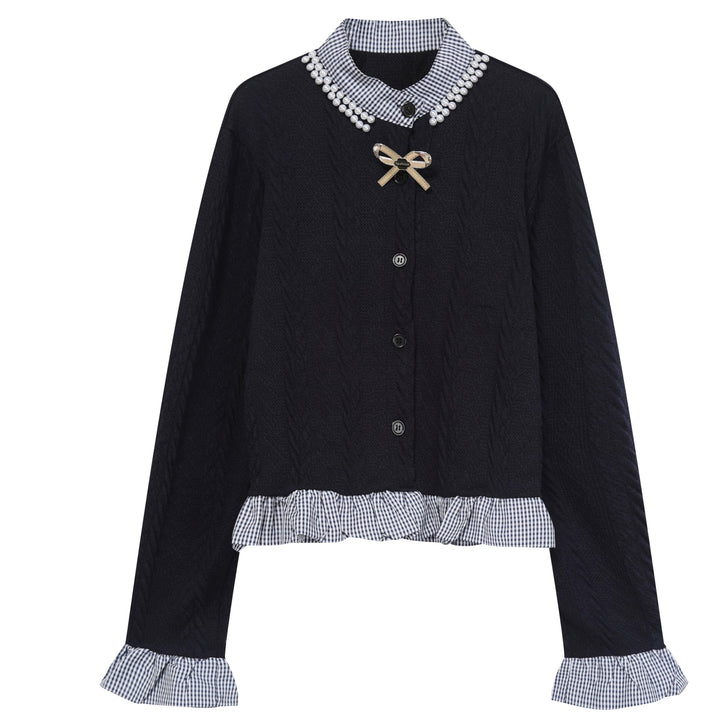 Perlenkragen Gingham Rüschenshirt