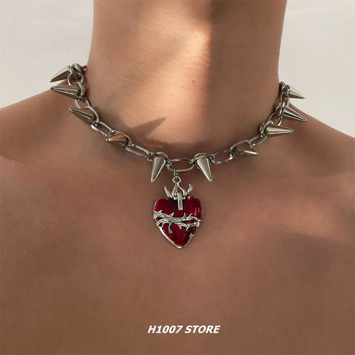 Nieten Herz Anhänger Choker Halskette