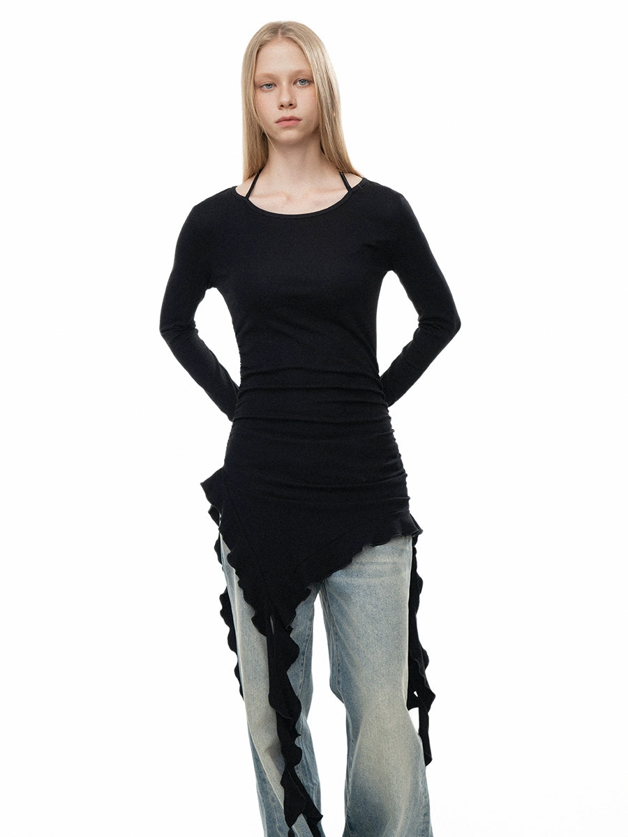 Asymmetrisches Quasten Langarm-Turtleneck-Oberteil
