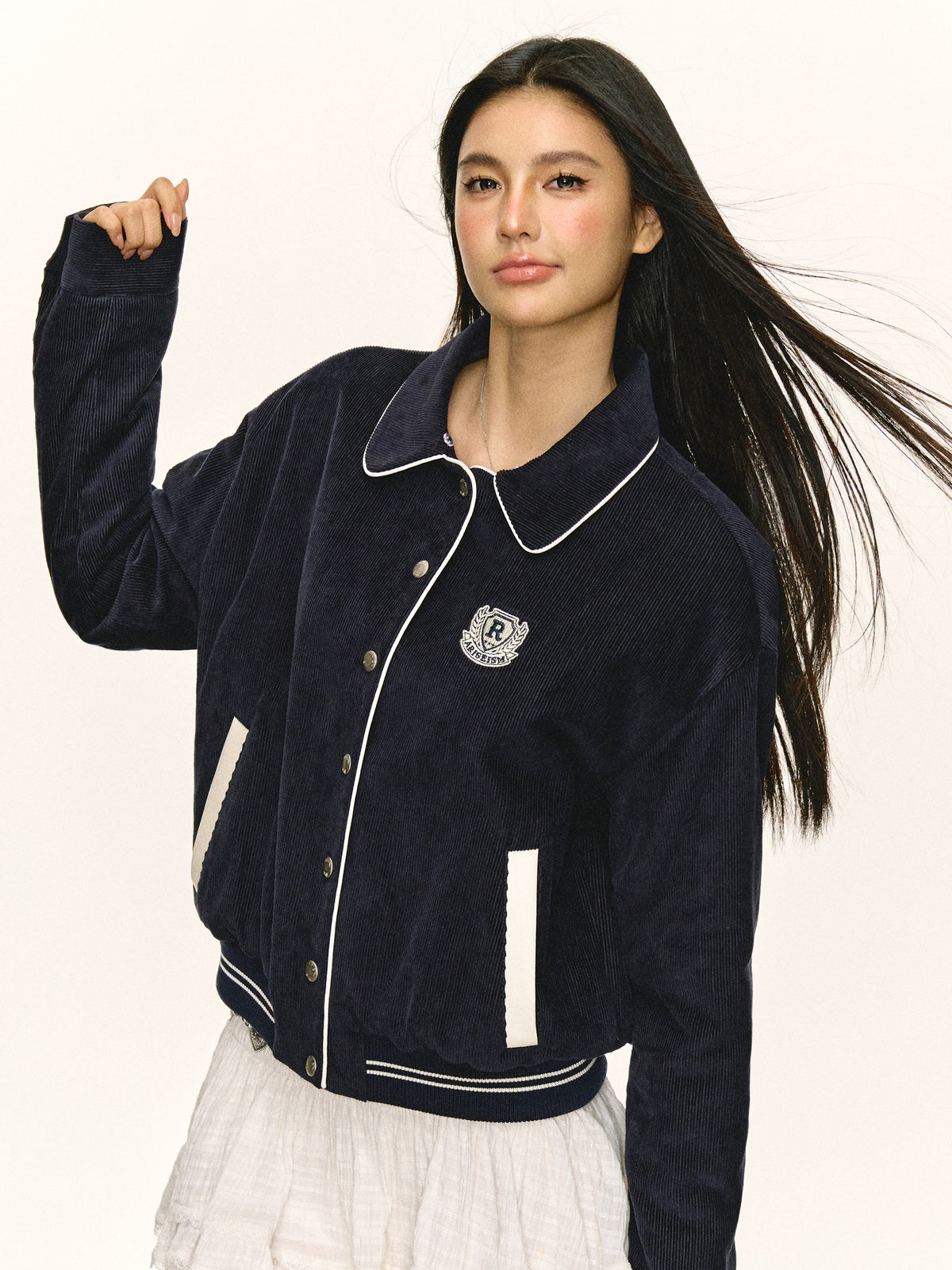 Detachable Fur Collar Corduroy Jacket