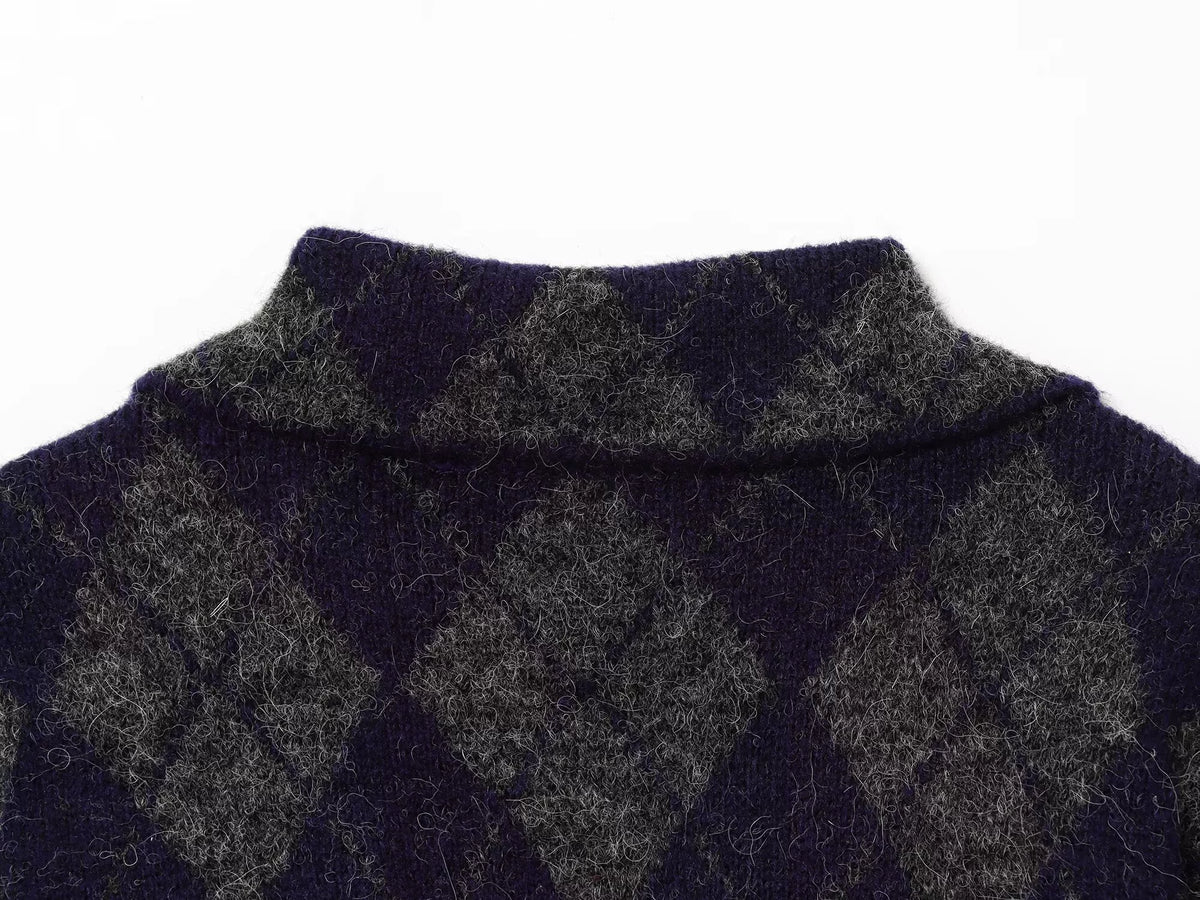 Diamantmuster gestrickte Bomberjacke
