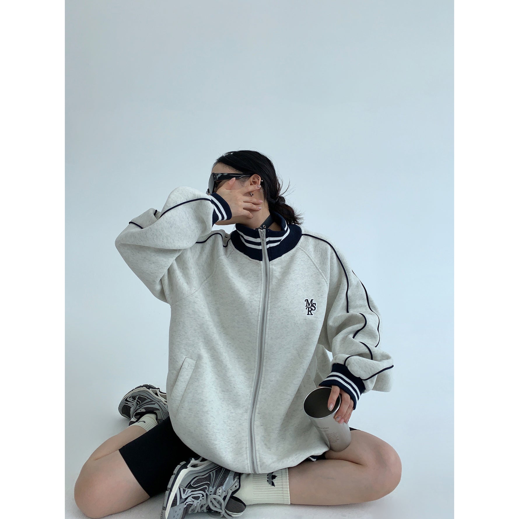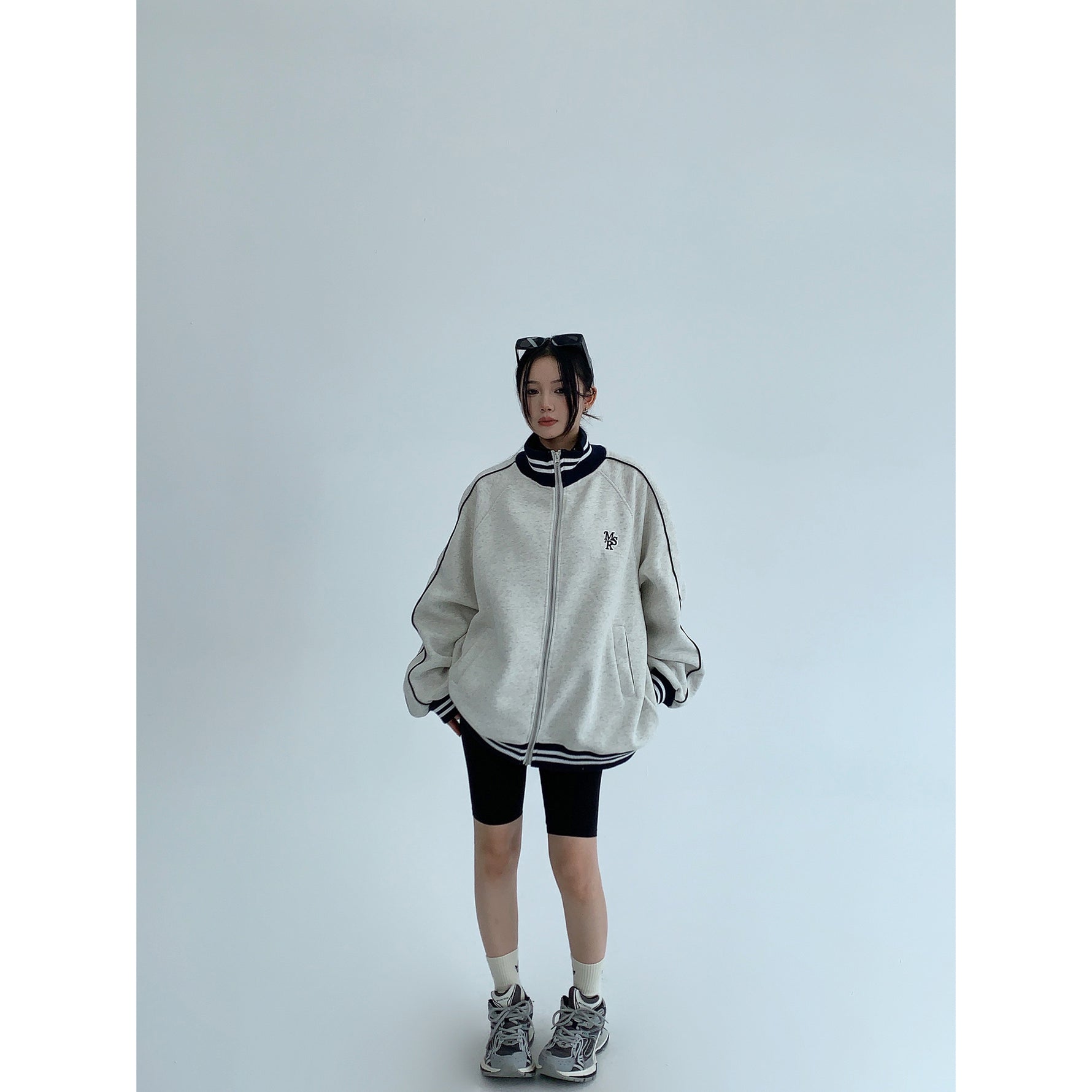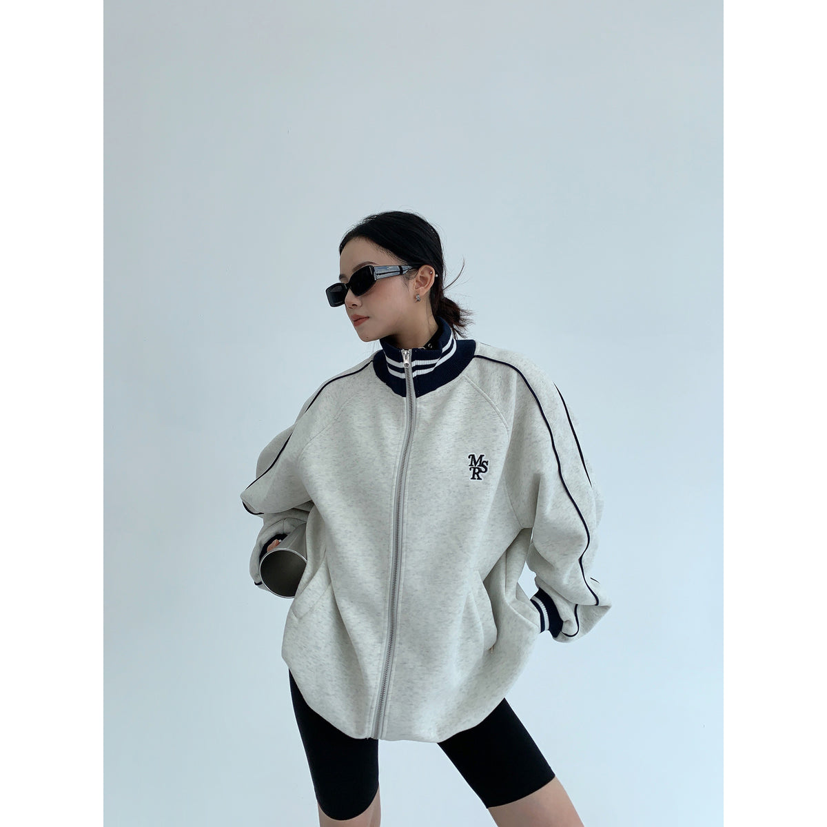 Embroidered Stand Collar Sweater Jacket