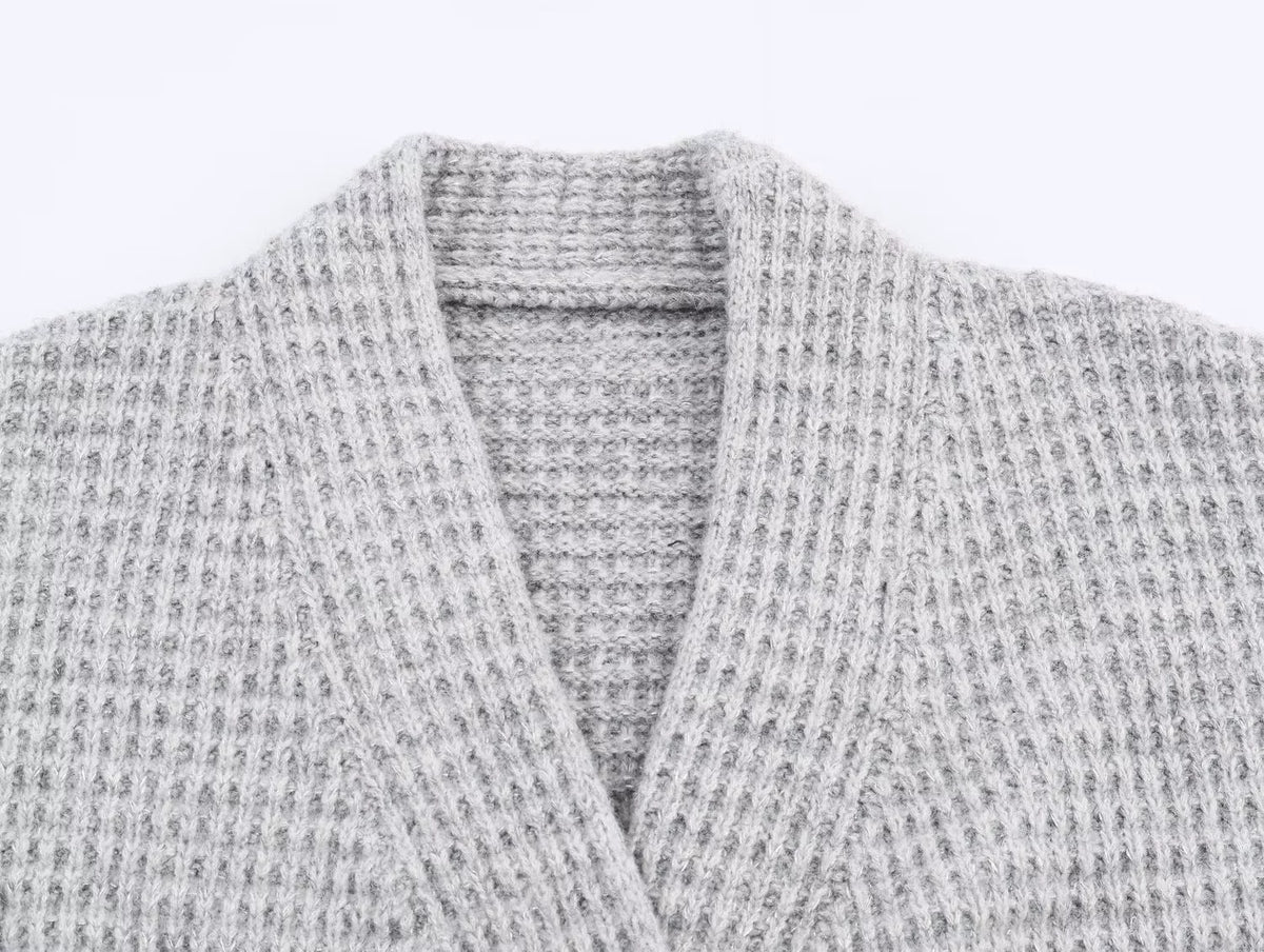 Lässiger Strick-Button-Front Langer Cardigan