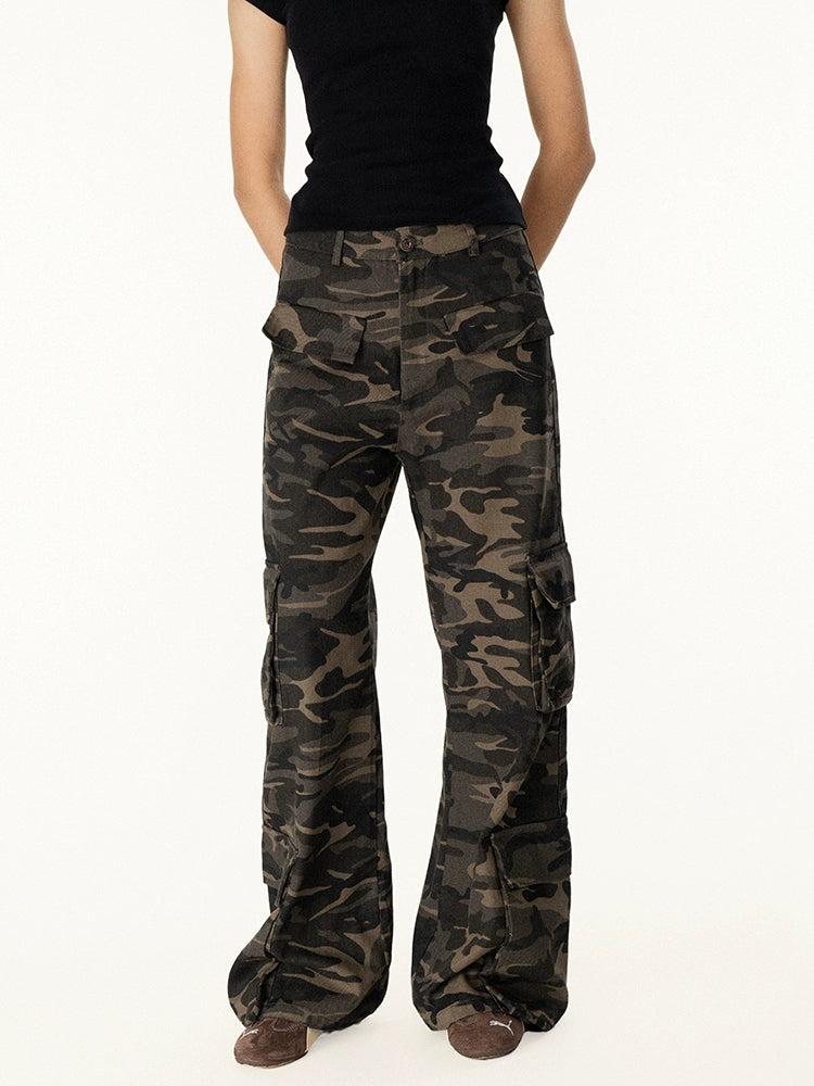 Lockere Passform Camouflage Cargo Schlaghosen