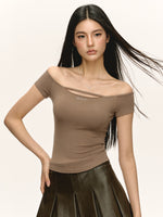 Schulterfreies, kurzärmeliges, tailliertes Oberteil