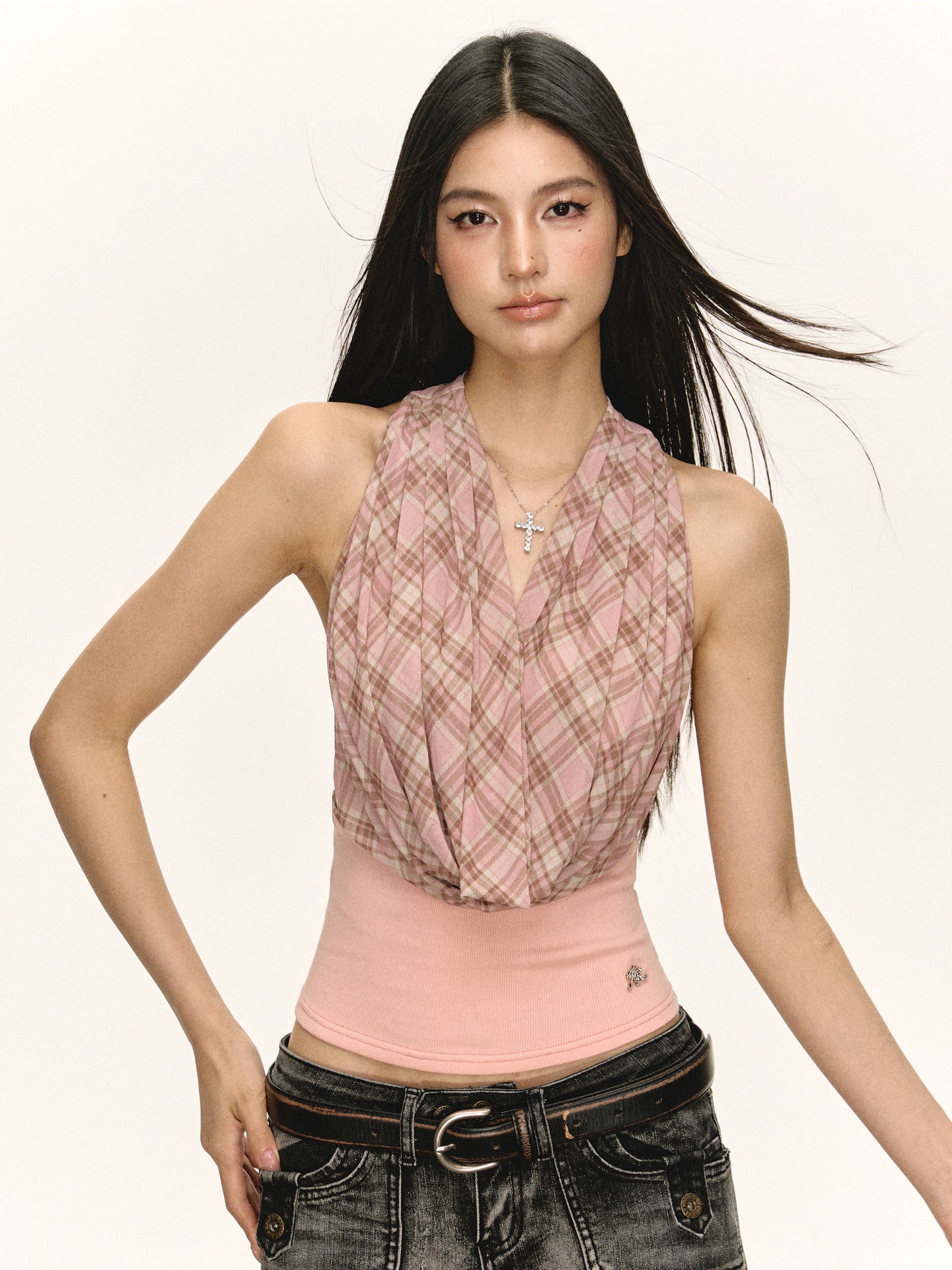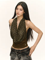 Plaid Draped Sleeveless Knit Tank Top