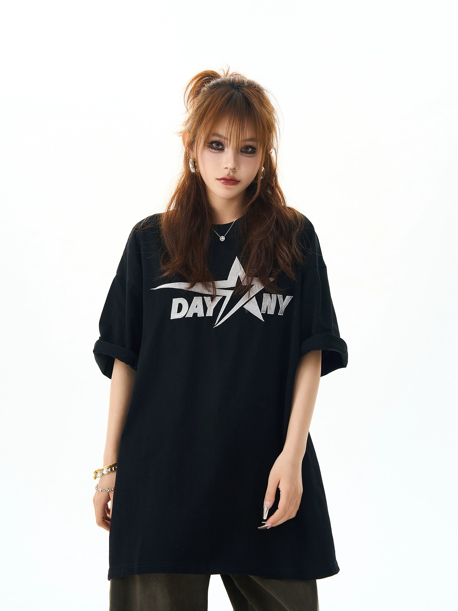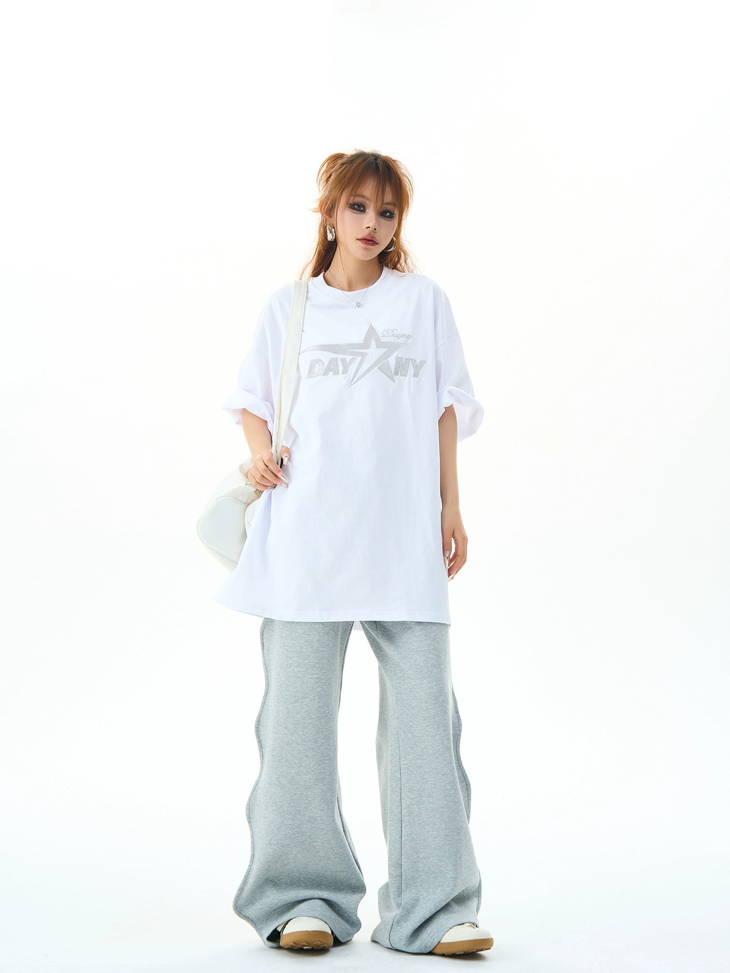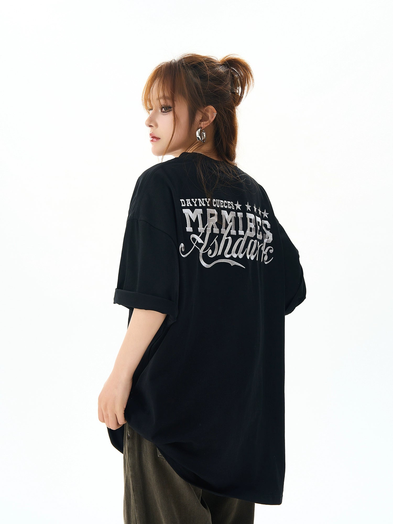 Sternbesticktes Übergroßes Kurzarm-T-Shirt
