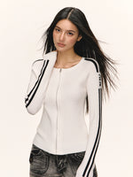 Reißverschluss-Rippstrick-Sweatshirt