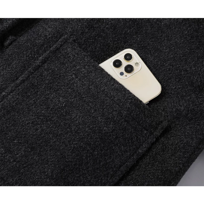 Fleecegefütterter langer Wollwintermantel