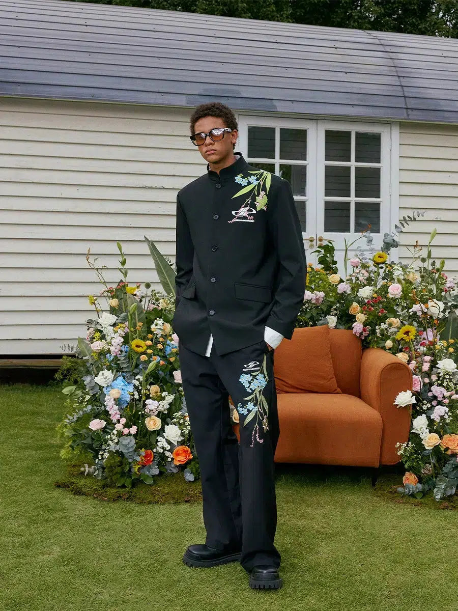 Chinesischer Stil Zhongshan-Kragen bestickte Jacke