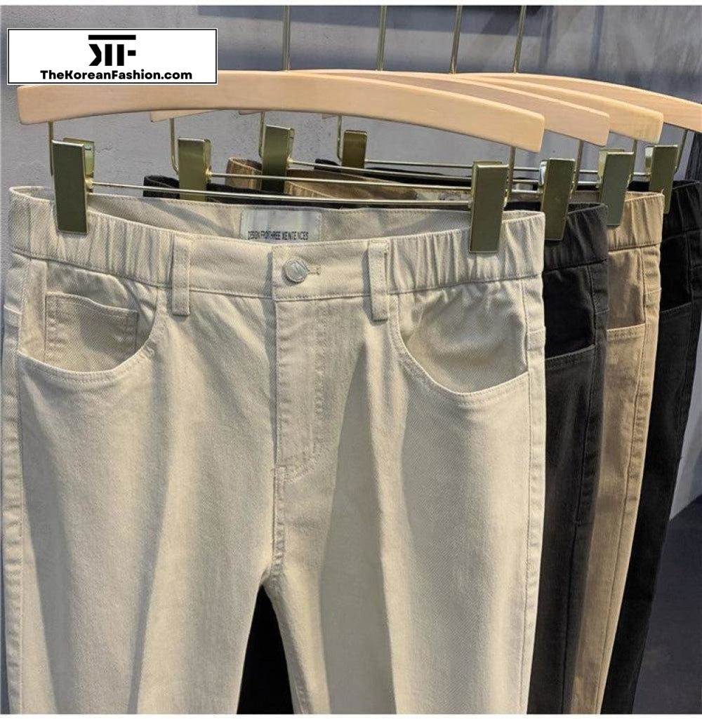 Herbst Baumwolle Elastischer Bund Lässige Hose