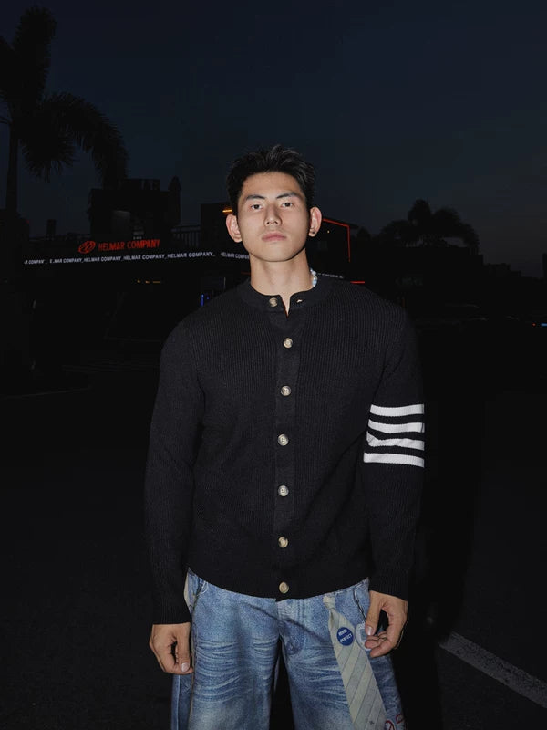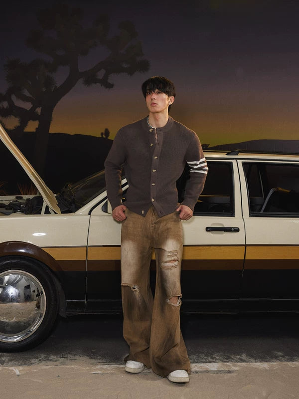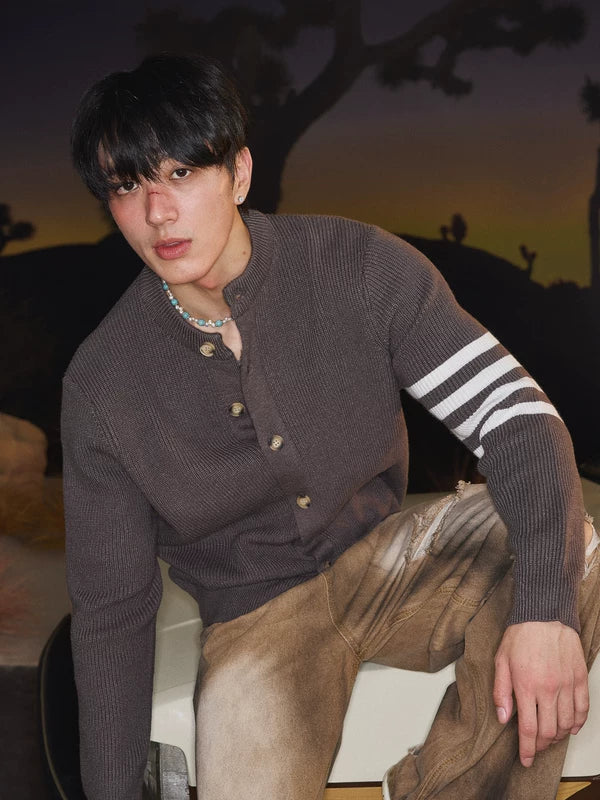 Preppy Strickknopf-Down Cardigan Pullover