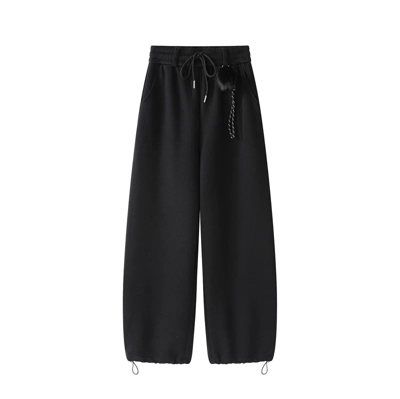 Fleece-Lined Cropped Wide-Leg Pants