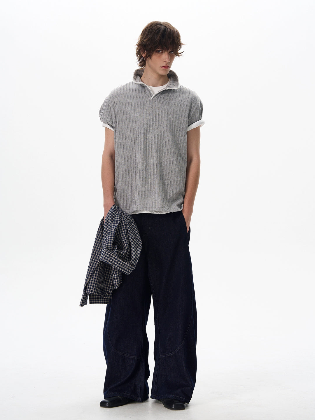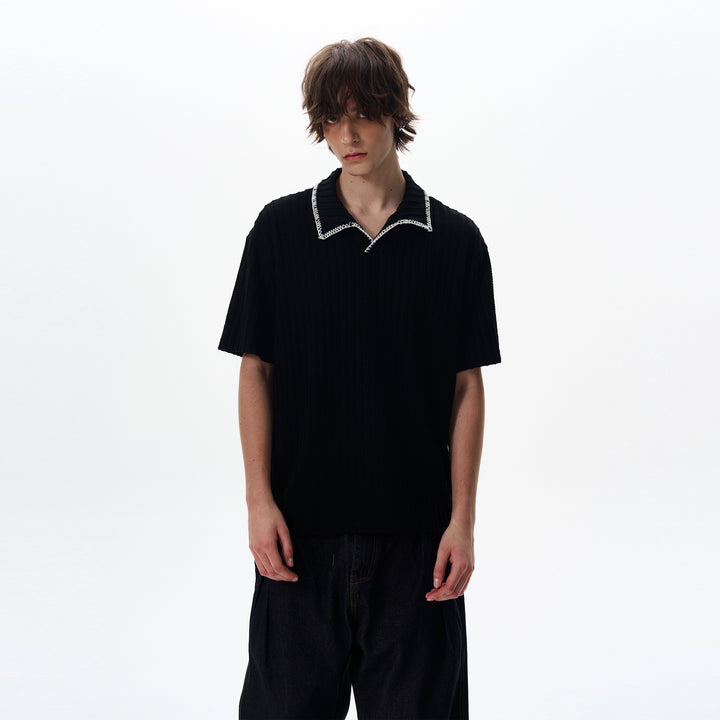 Retro Texturierter Polo-Kragen Gestrickter Pullover