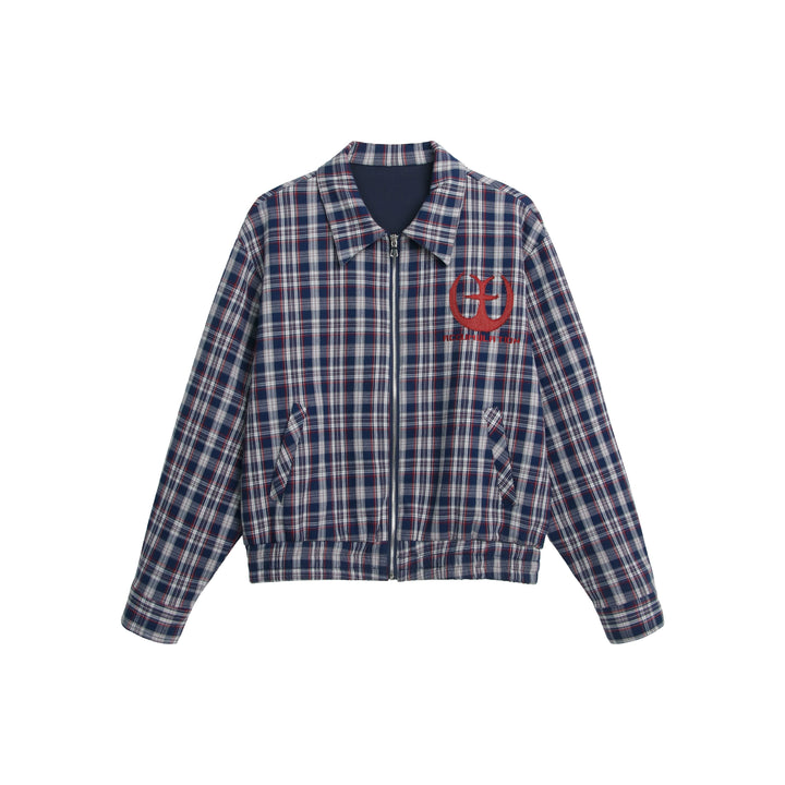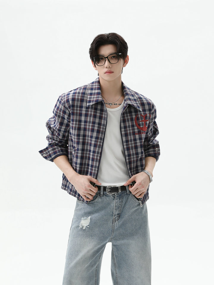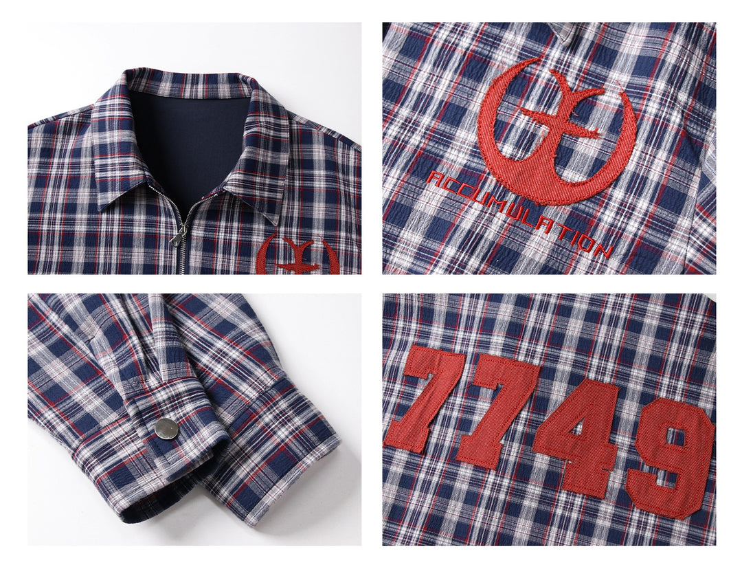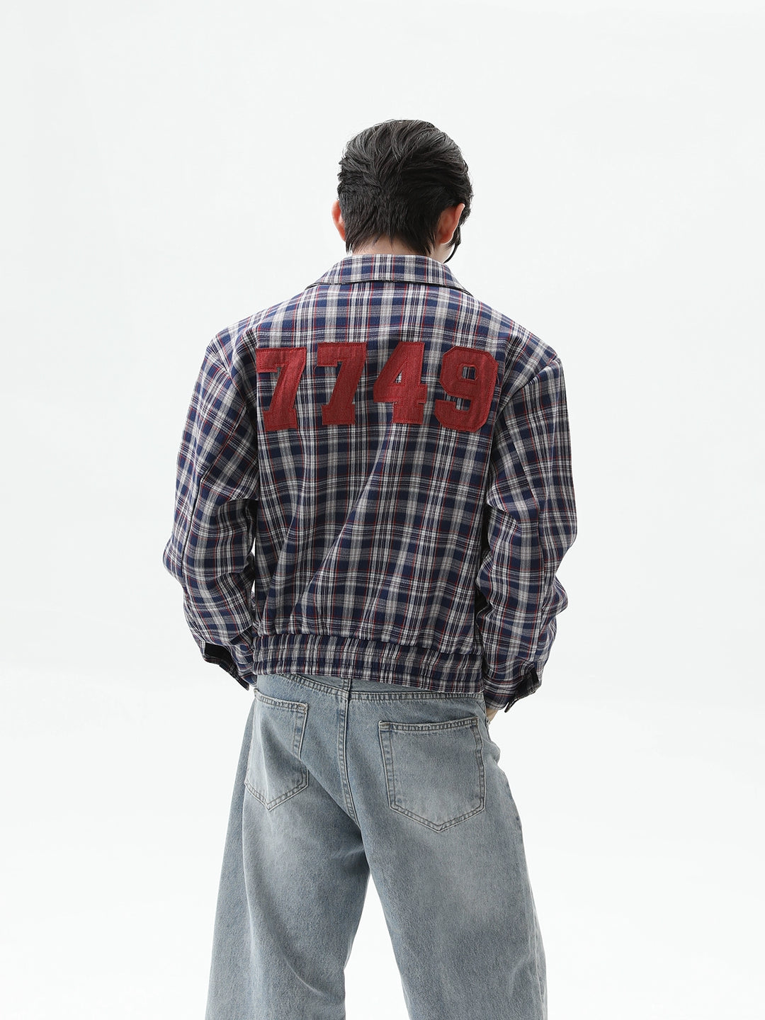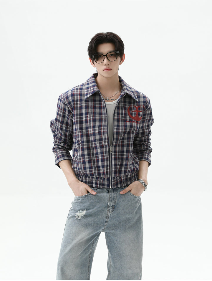 Kariertes Baumwoll-Reißverschluss-Jackett mit Revers