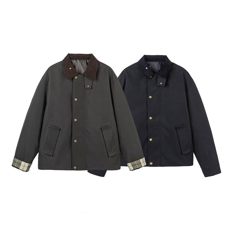 Kariertes Cuff Corduroy Kragen Arbeitsjacke