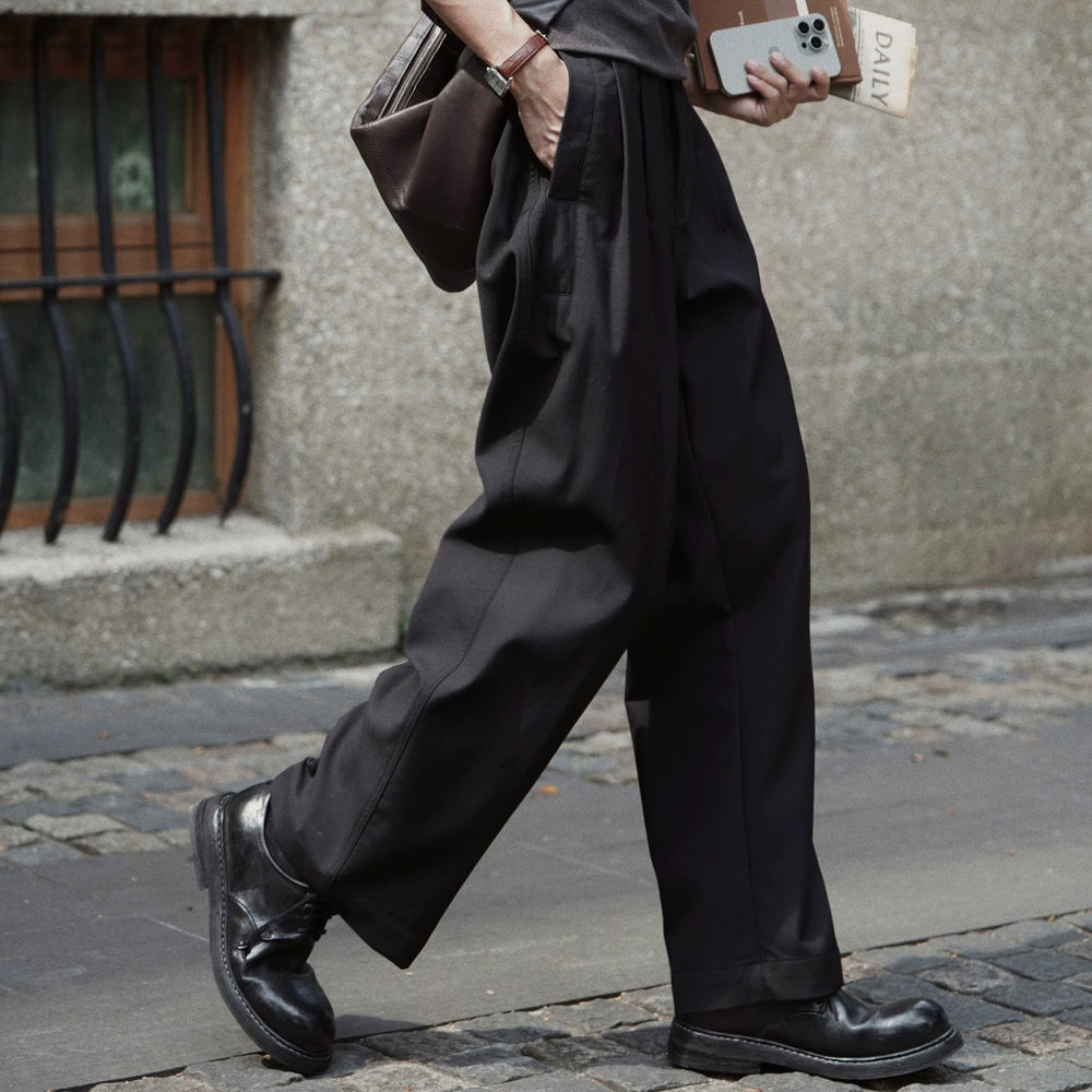 - Leicht weit geschnittene gerade Beine kombiniert mit einem entspannten, elastischen Taillendesign für einen verbesserten Taillenwickeleffekt und Tragekomfort