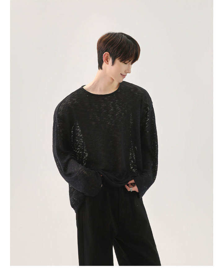 Durchsichtiger Strickpullover mit langen Ärmeln