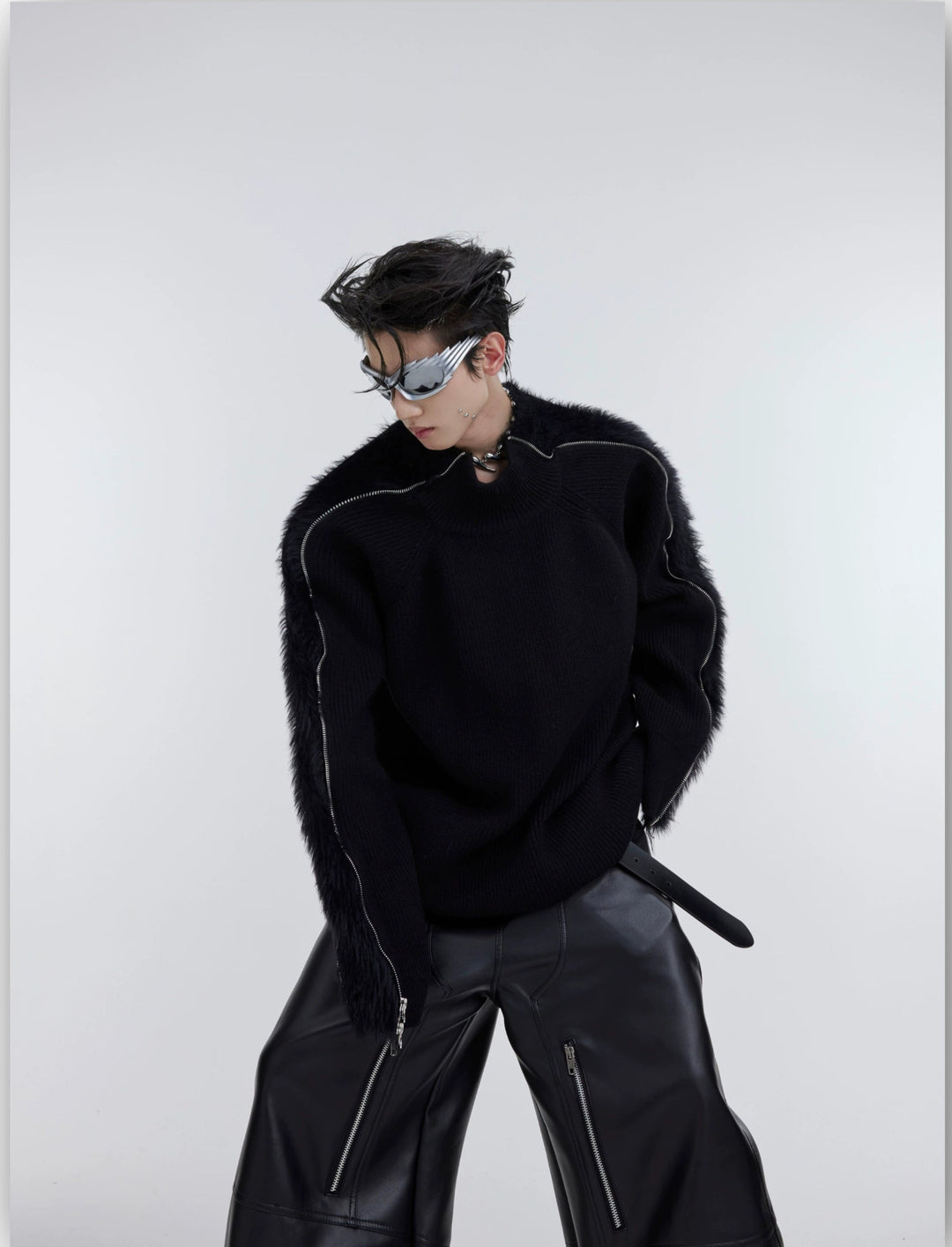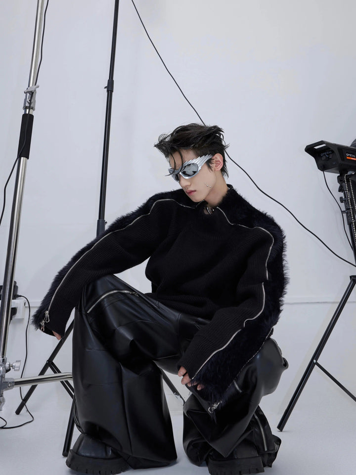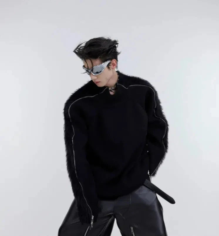 Doppelkopf-Metallreißverschluss Plüsch gestrickter Pullover