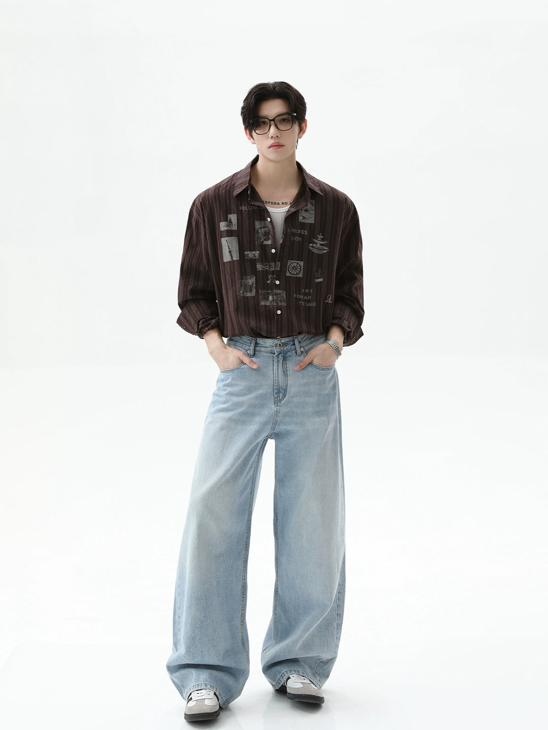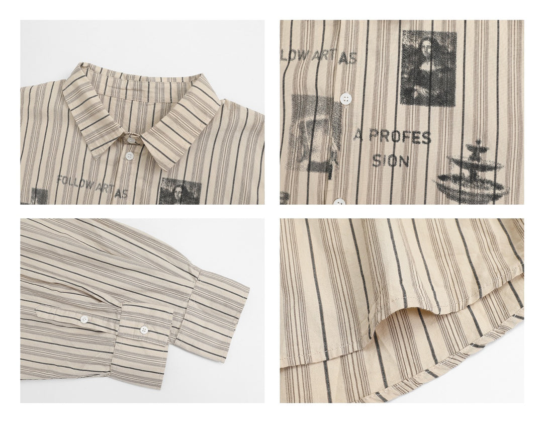 Gestreifte Baumwollbedruckte lässige lockere Bluse