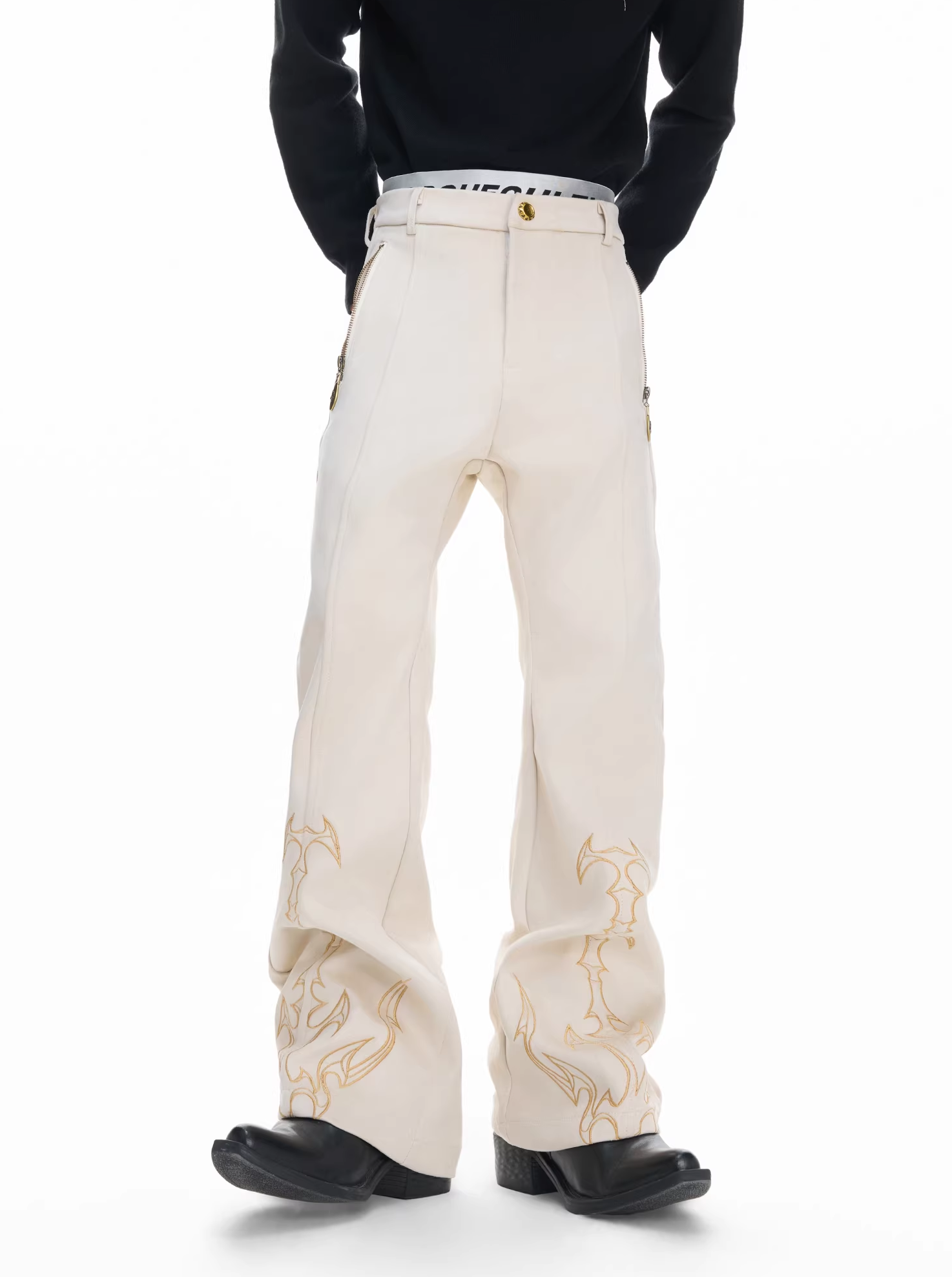 - Wirbelsäulen-Totem-Stickerei an den Beinen