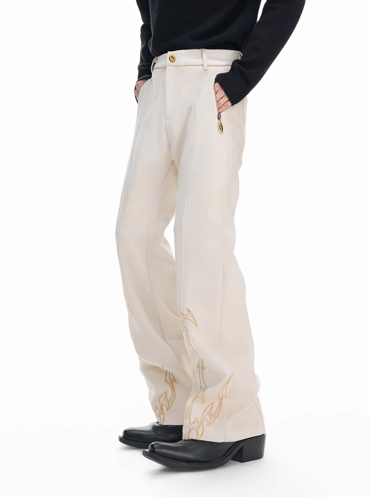 Bestickte Dornenmuster Gerade Leg Pants