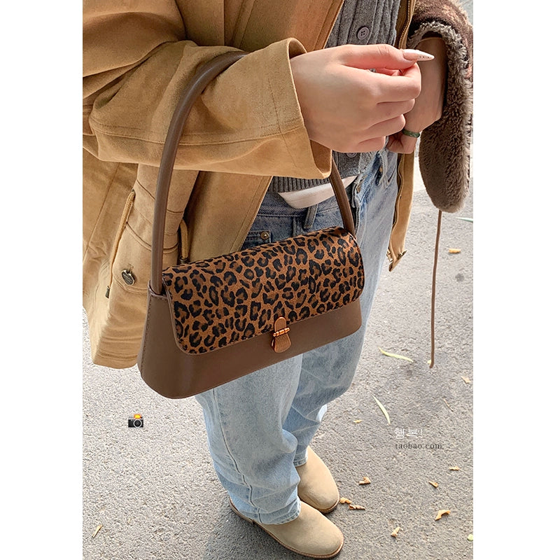 Leopardenmuster Retro Baguette Schultertasche
