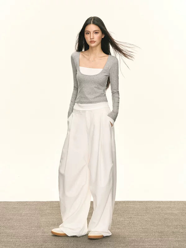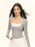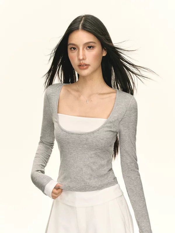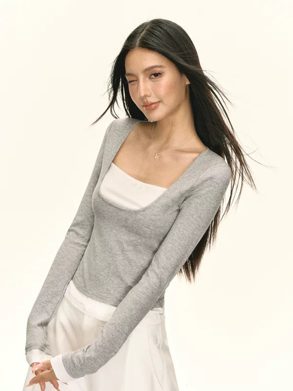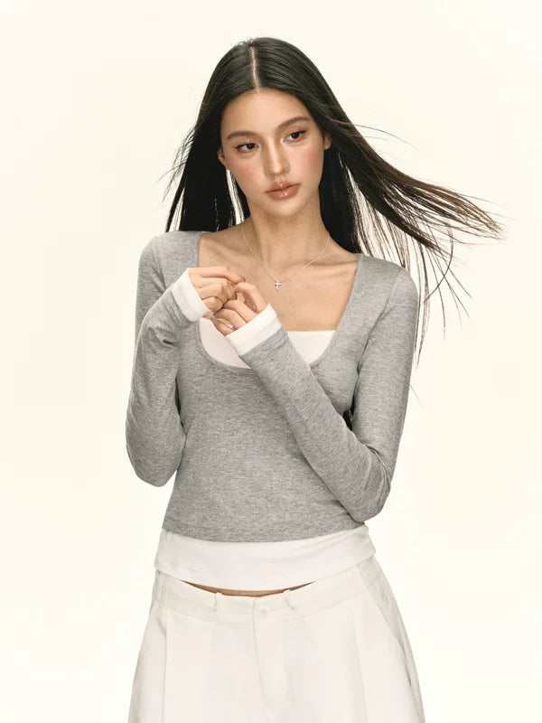 Faux-Zweiteiler Langarm-Pullover