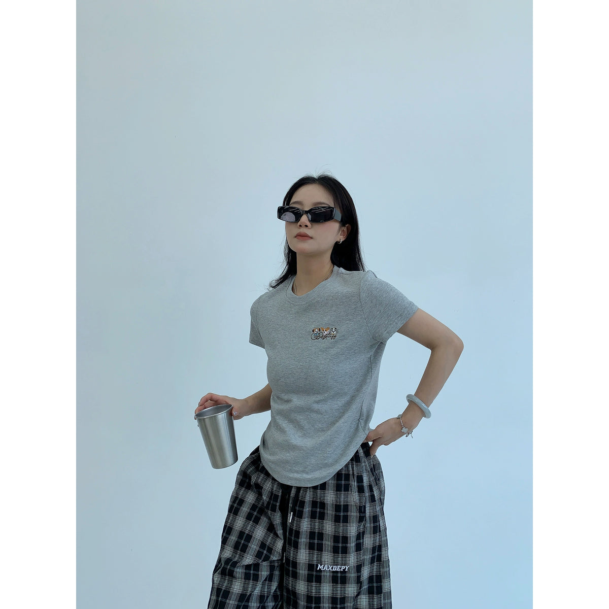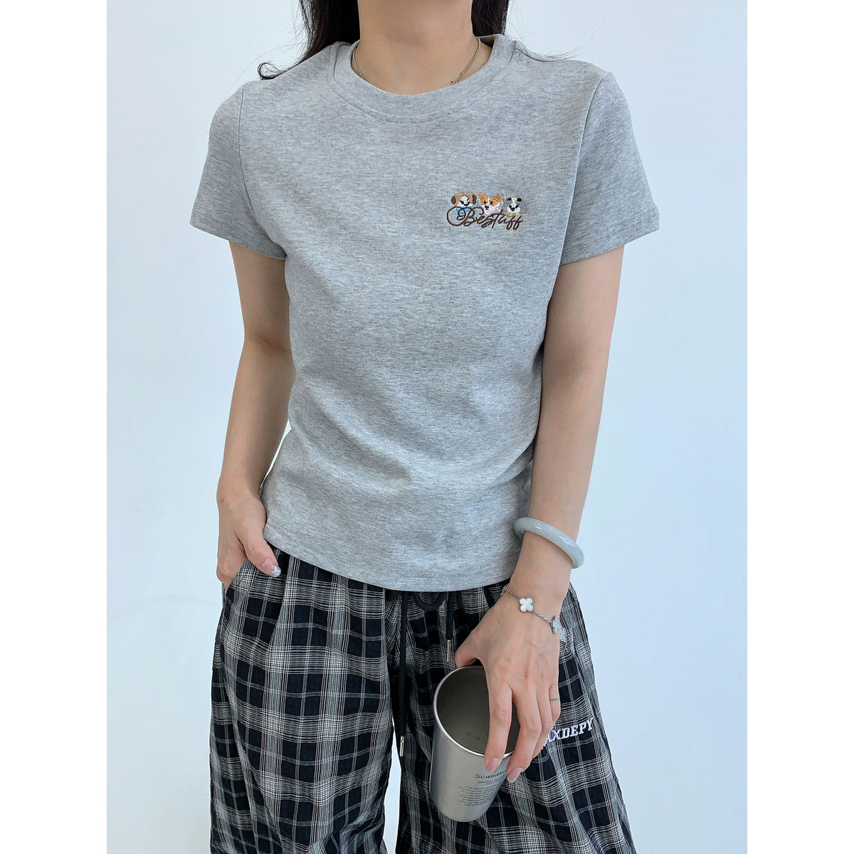 Cartoon-Stickerei Lässiges Slim-Fit T-Shirt