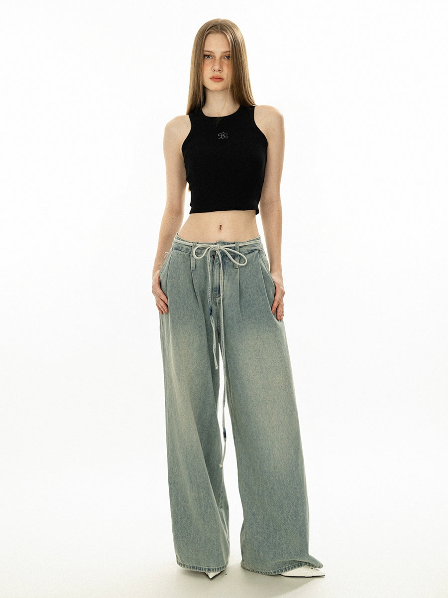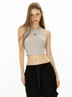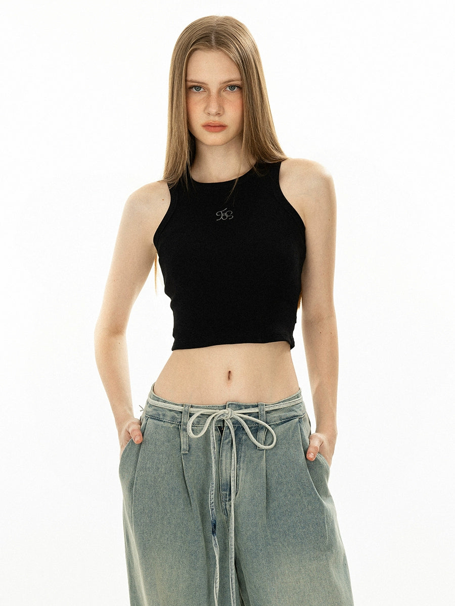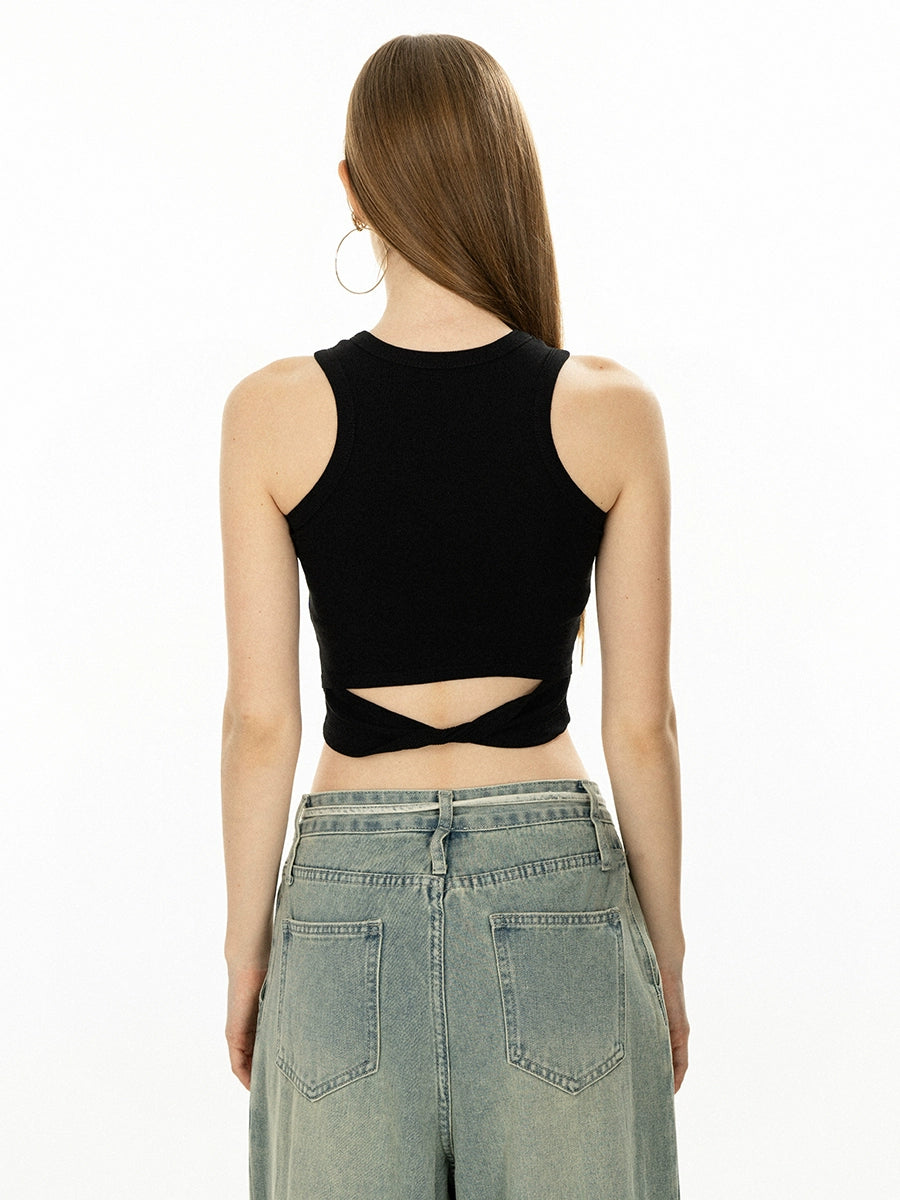 Gekürztes geripptes Tanktop mit offenem Rücken