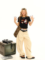 Dackel Druck Slim Fit Kurzarm T-Shirt