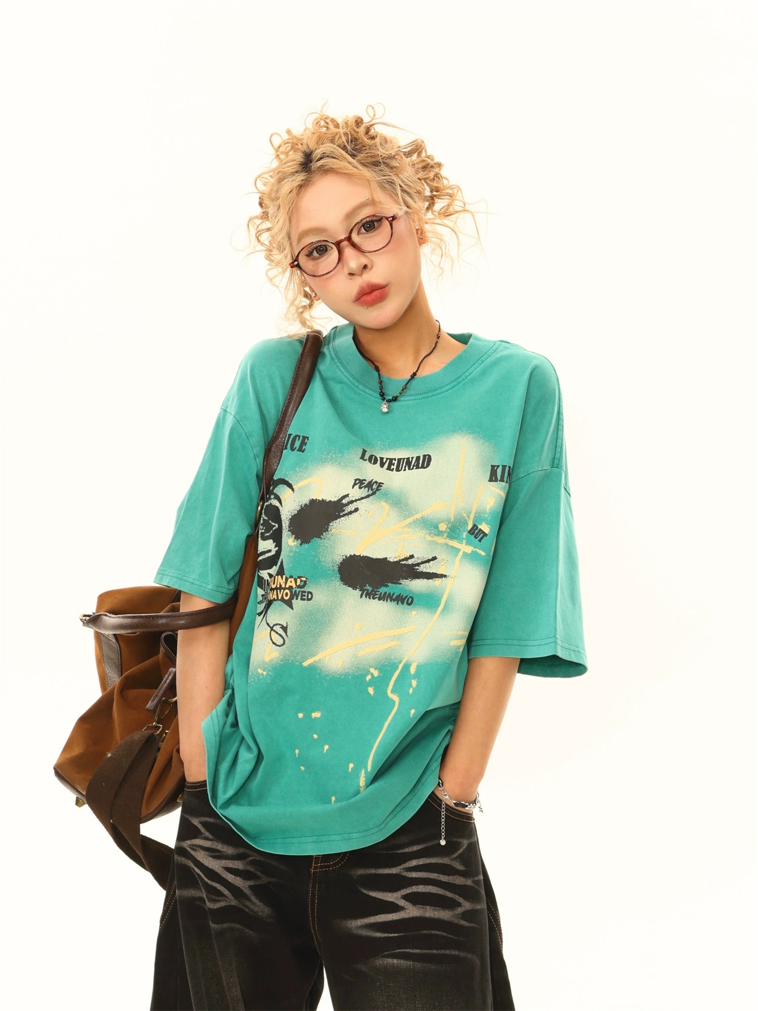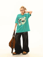 Verwaschenes Grafik Oversized Kurzarm-T-Shirt