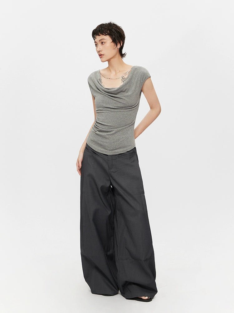 Drapierter Hals Slim Fit Cap Sleeve Top