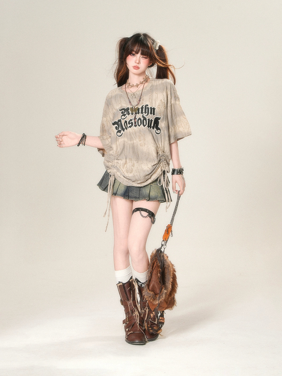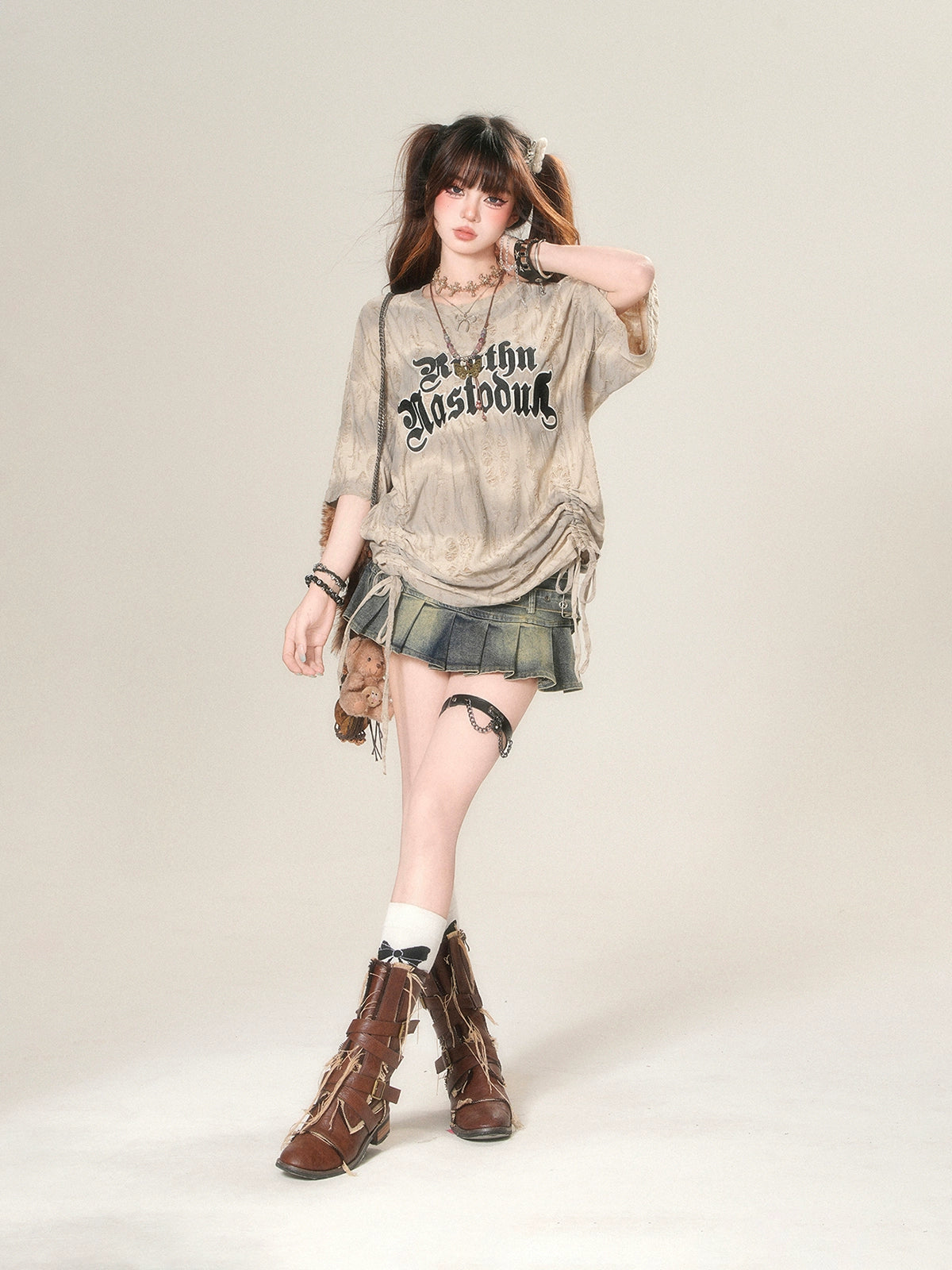 Kordelzug Kurzarm Grafik T-Shirt