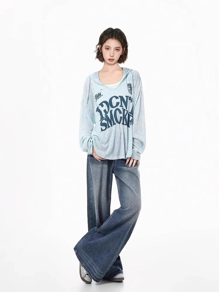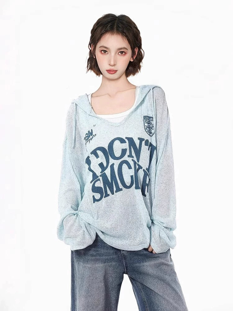 Hooded Langarm Strick-Sonnenschutzoberteil