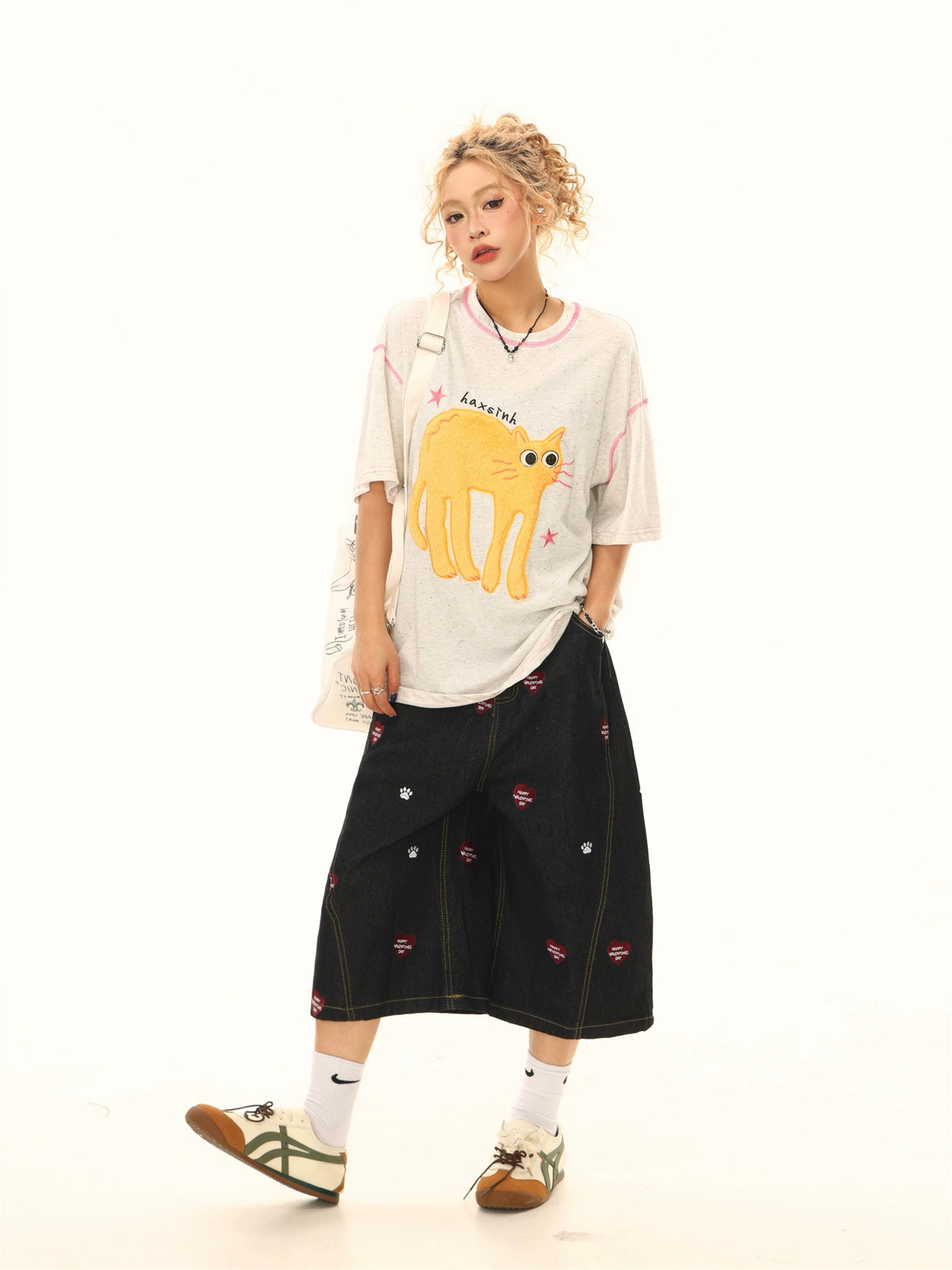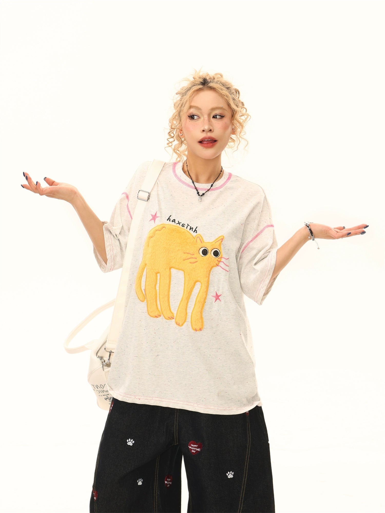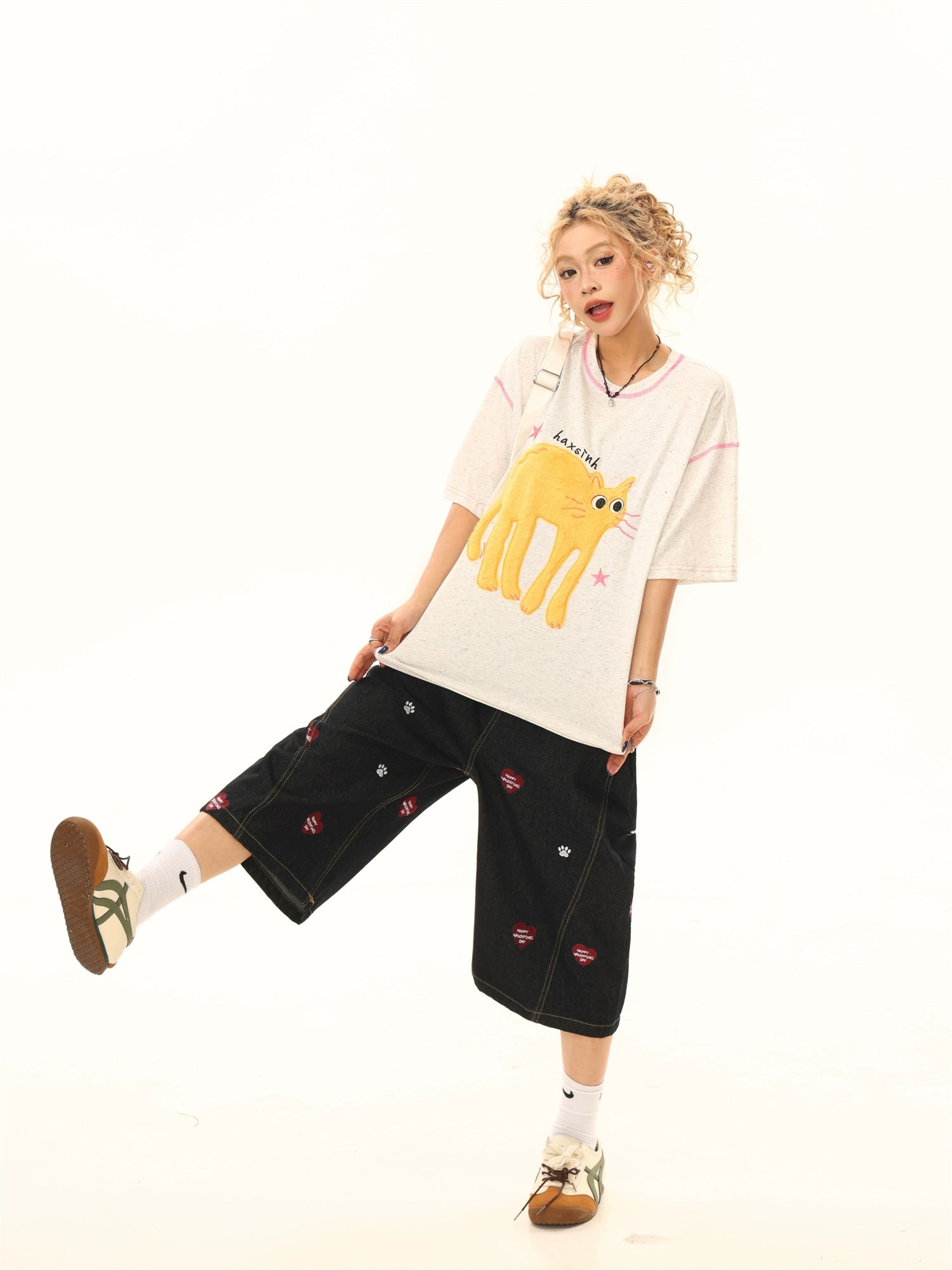 Katze Stickerei Lockere Kurzarm T-Shirt