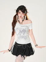 Off-Shoulder Grafik Slim Fit T-Shirt