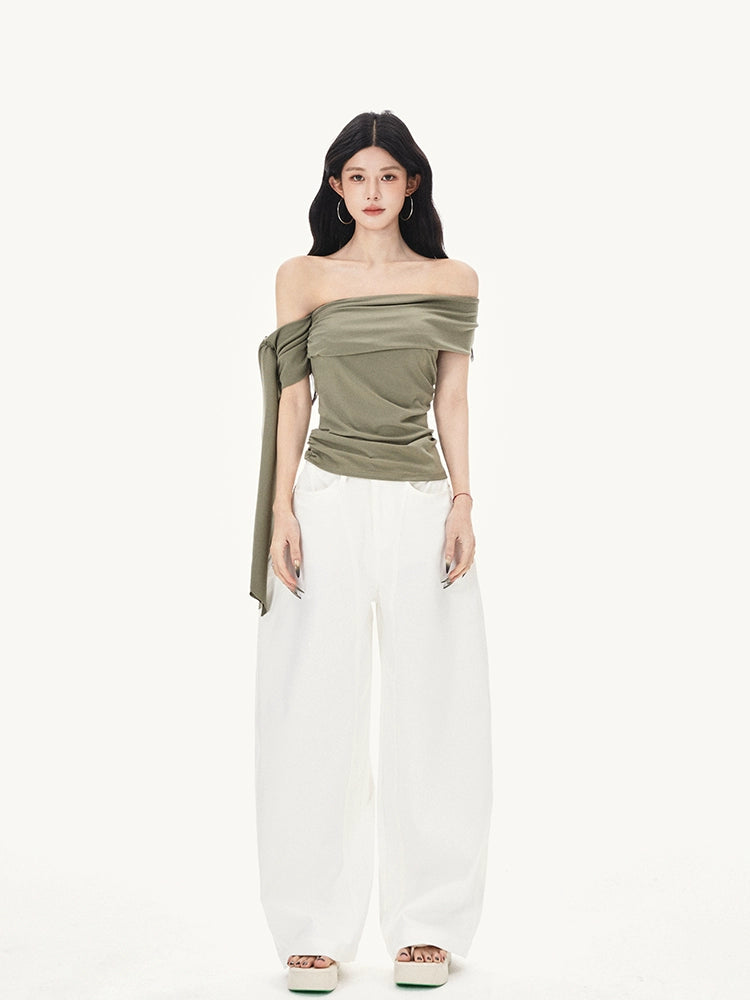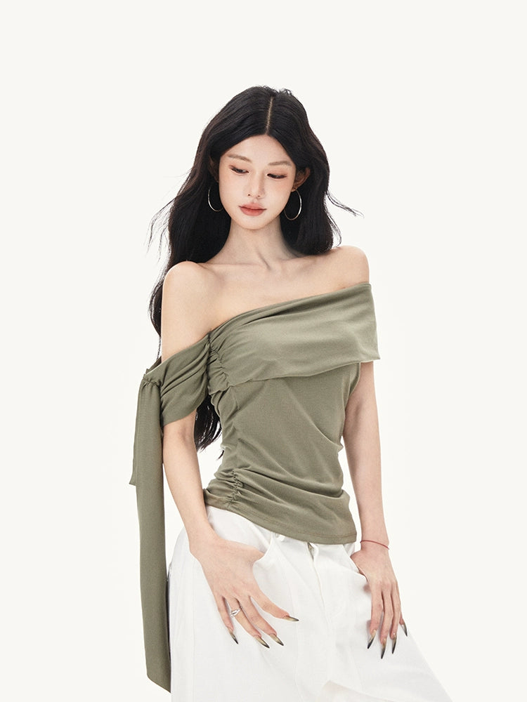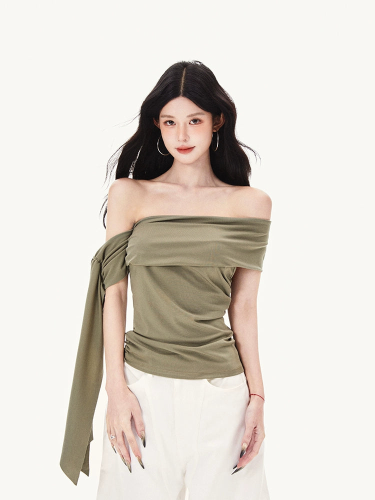 Ein-Schulter-Ripsband Gestricktes T-Shirt