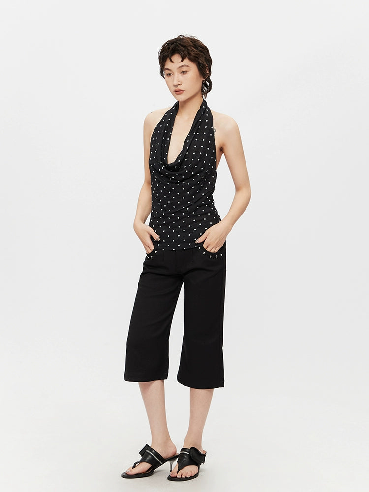 Polka Dot Halterneck Rückenausschnitt Tanktop