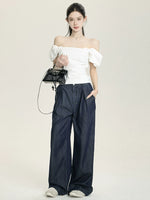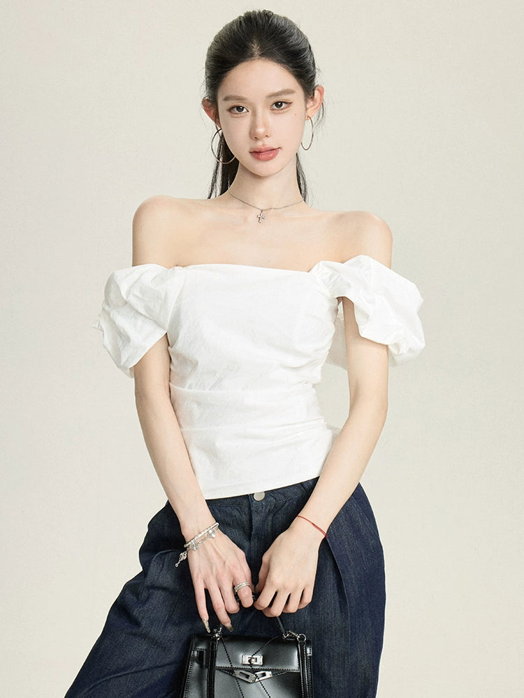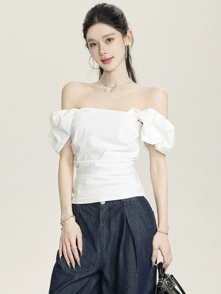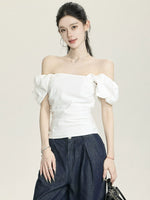 Puffärmel Ein-Schulter Slim-Fit Oberteil