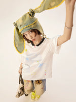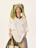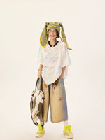 Retro Cartoon Grafik V-Ausschnitt Jersey-Oberteil