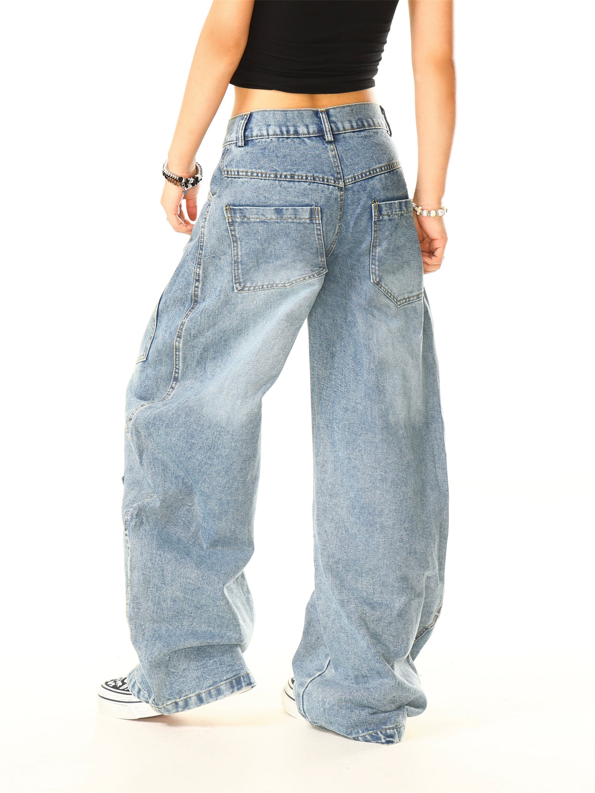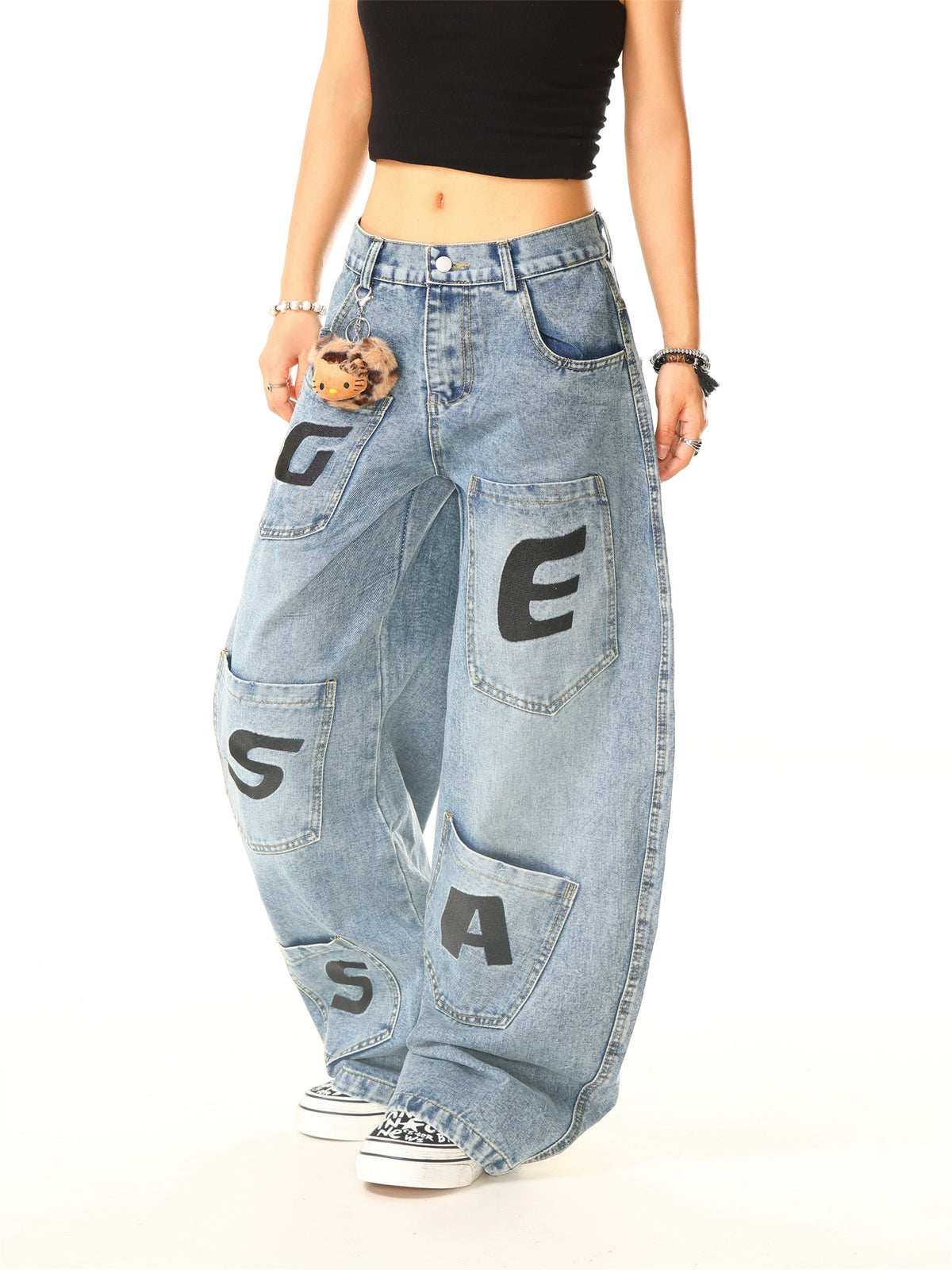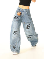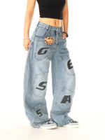 Retro verwaschene weite Beinhosen mit Buchstaben