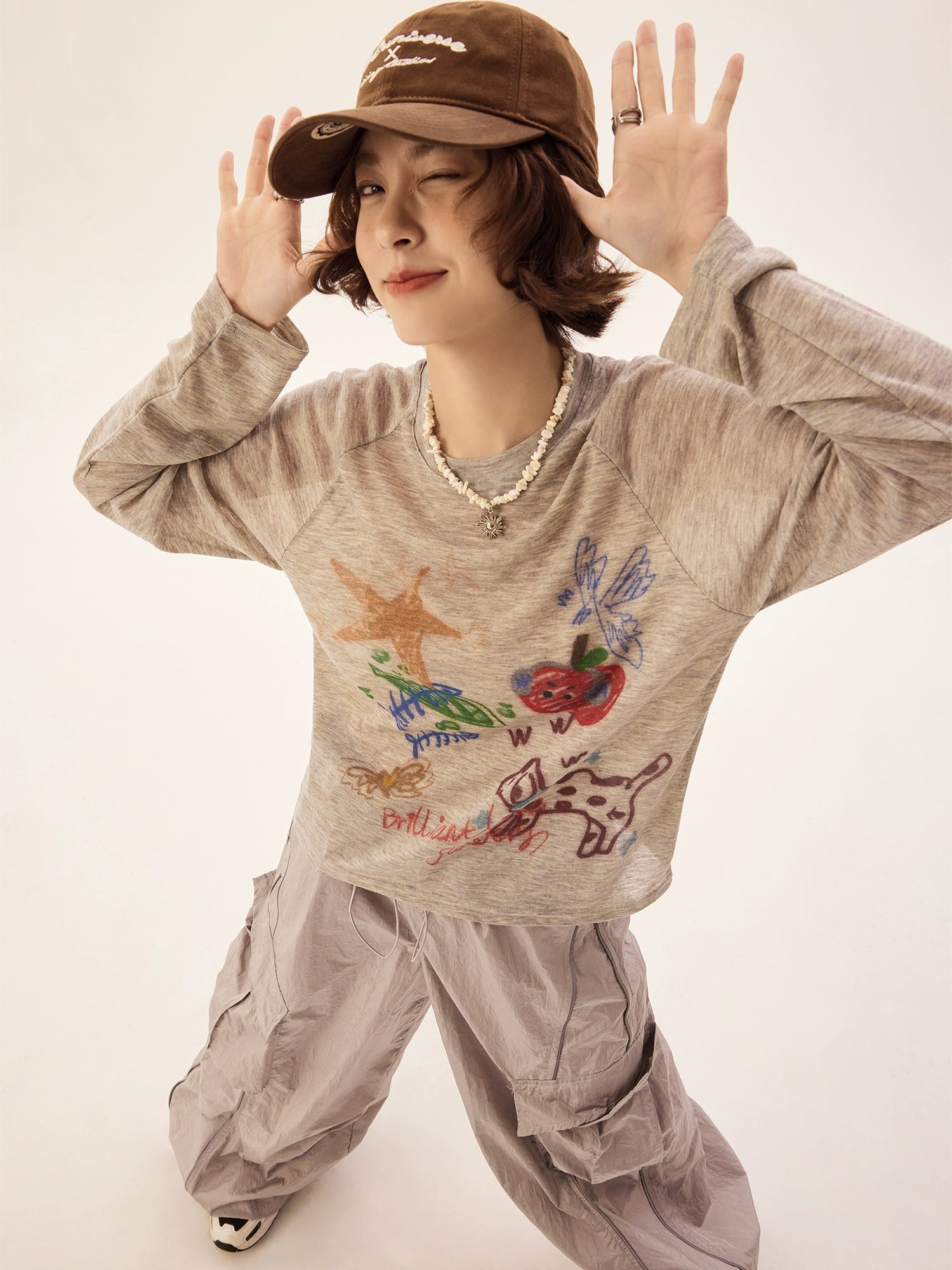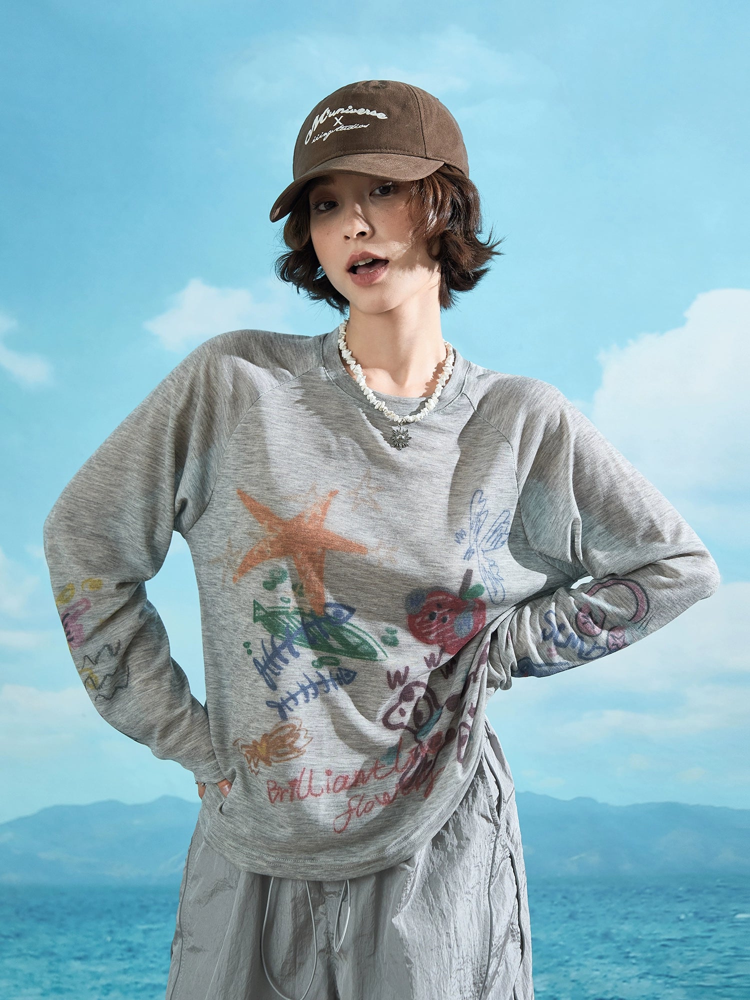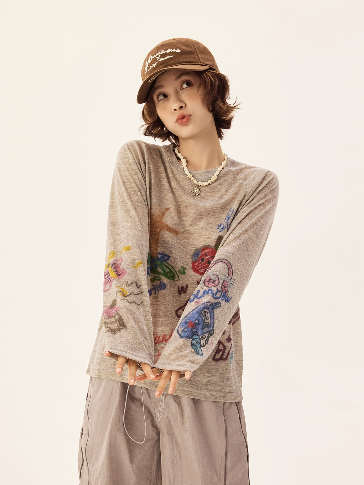 Retro Graffiti Chiffon Langarm-Turtleneck