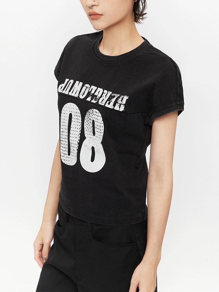 Retro Buchstaben Abgenutztes Kurzarm-T-Shirt