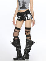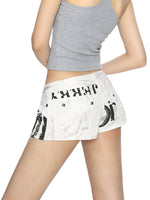 Nieten Reißverschluss Graffiti Niedrigbund Shorts