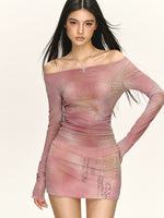 Durchsichtiger Mesh-Top mit schulterfreiem Design und Hose